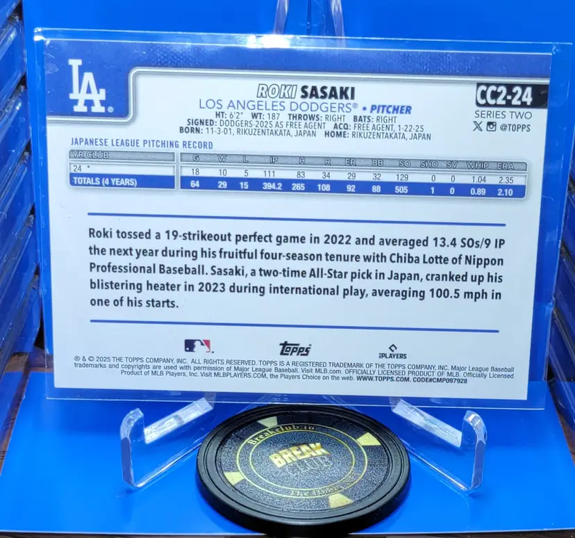 Roki Sasaki 2025 Topps Series 2 Superbox Companion Card Rookie RC #CC2-24 Los Angeles Dodgers