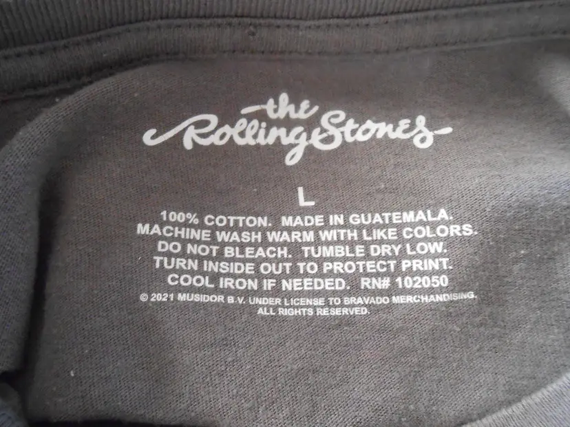Show your love for the Rolling Stones with this official multi-color logo t-shirt. Made from 100% cotton, this short sleeve t-shirt features a round neckline. The gray shirt is perfect for any fan of rock and music, with its classic design and vibrant colors. This women's size large t-shirt is machine washable, making it easy to care for. The shirt is not only stylish, but also comfortable to wear, making it a great addition to any wardrobe. Get your hands on this Bravado brand t-shirt, perfect for any occasion!
