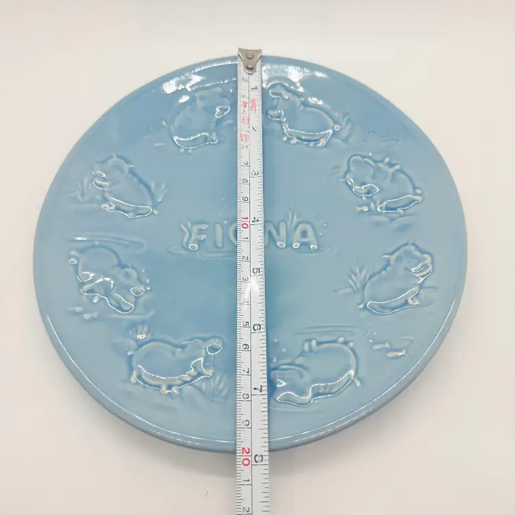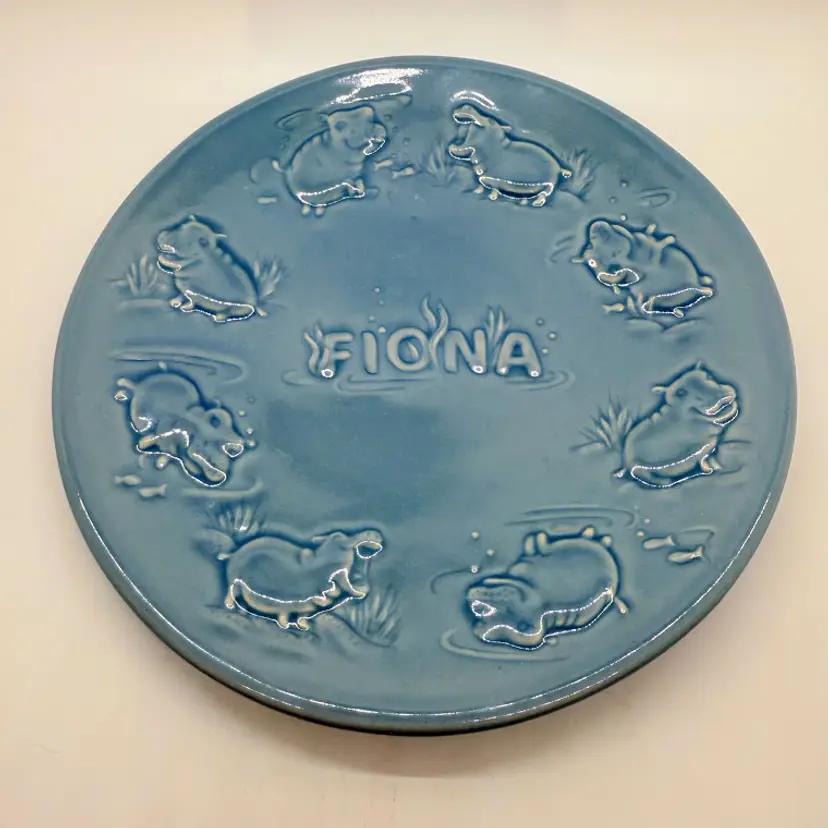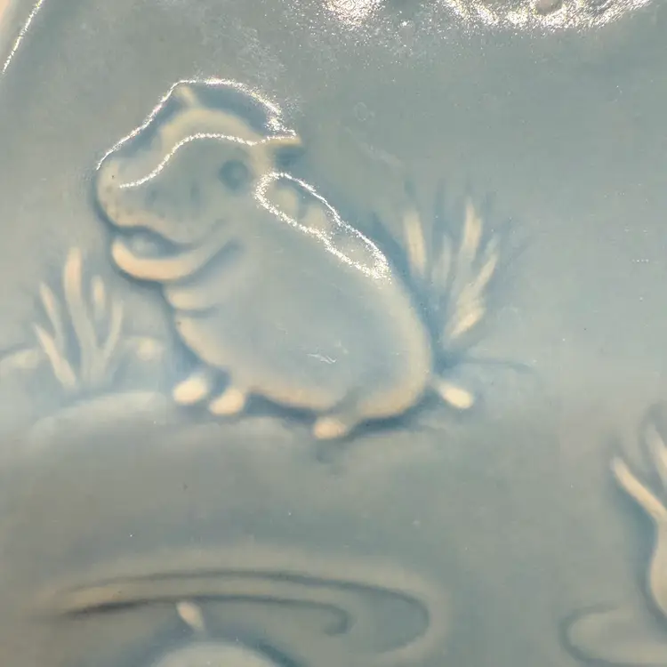 Keywords: Hippopotamus, Cincinnati Zoo, Ohio, Commemorative, Limited Edition, Handmade, Collectible, Light Blue, Pastel, Made in the USA, Contemporary, Cake, Cereal, Pie, Cute, Gift, Present, Birthday, Christmas, Discontinued, Pair, Set of 2