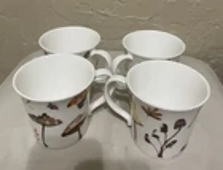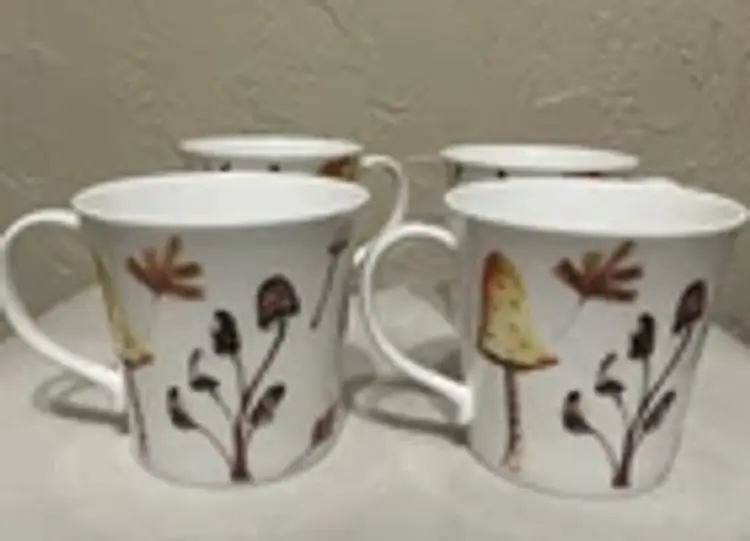 this adorable set of rose of england cups is a must have for anyone who loves mushrooms. made of bone china they are delicate yet durable. no chips or cracks.