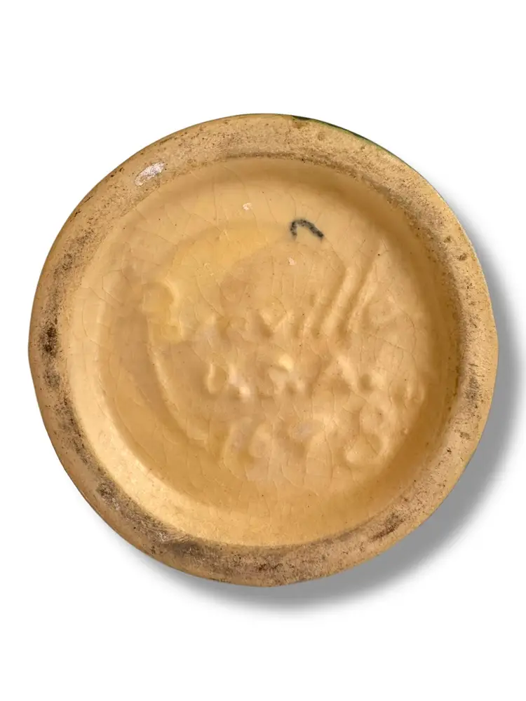 The Roseville Peony Vase Double Handle 169-8 in pink, green, and yellow flowers is a vintage piece crafted in the United States in 1942. Width: 5 7/8 in, Height: 8 in Including handles. This 8-inch vase features a flower pattern, is signed by the brand, and is made of clay and ceramic using pottery techniques. It embodies the Arts & Crafts/Mission Style of the 1940s, showcasing beautifully hand painted peonies as its subject. This original, art pottery piece adds a touch of elegance and charm to any floral display. It will be carefully packaged and shipped to right away.
