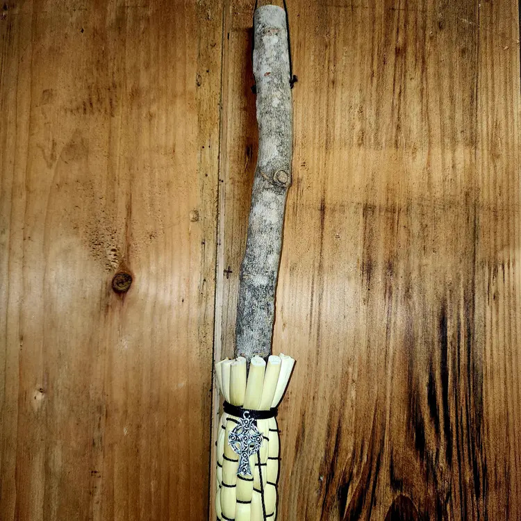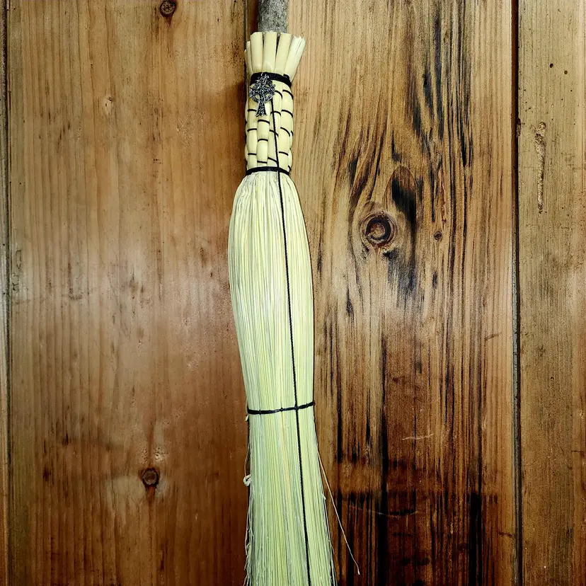 Embrace the natural charm of this Rustic Handcrafted Ritual Broom. Perfect for sweeping away negative energy and enhancing your sacred space. Crafted with a sturdy wooden handle and natural bristles, this broom is both functional and enchanting. Each piece is lovingly made by the RI_Broom_Witch.