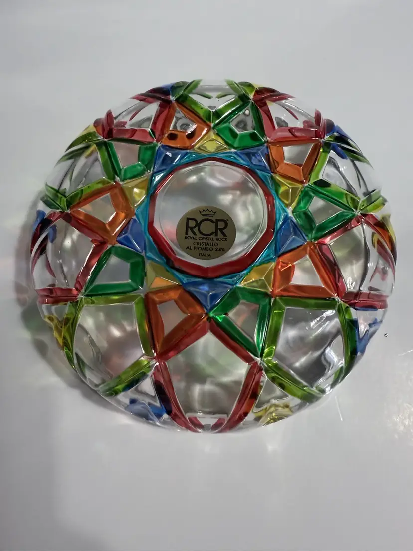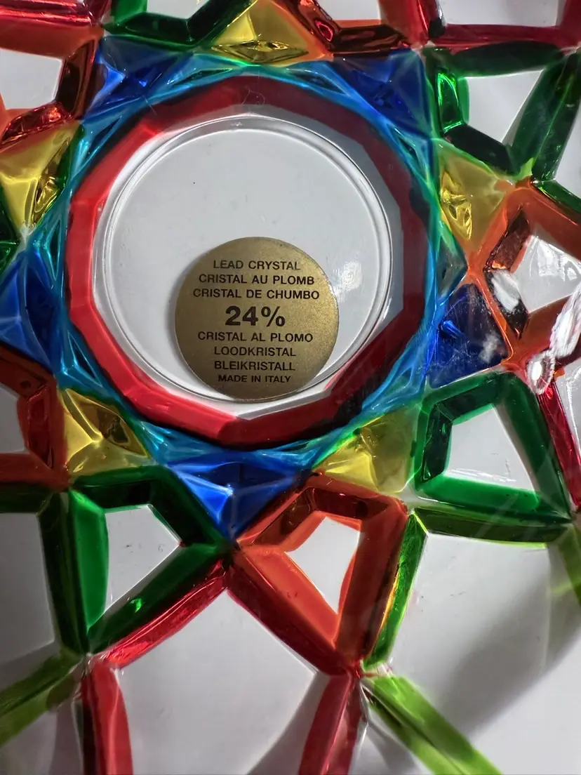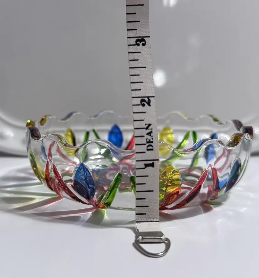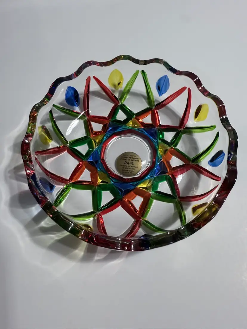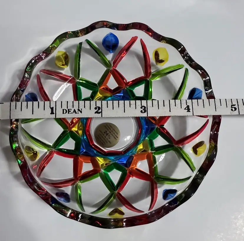 Beautiful colorful glass candy dish made in Italy. 24% lead Crystal. No chips or cracks - perfect condition.