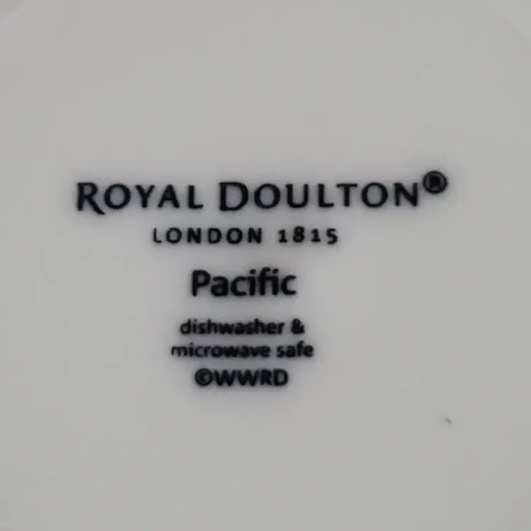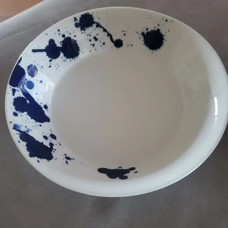 • Ceramic material • Blue splatter design • Dishwasher & microwave safe • Diameter: 9 inches • Made by Royal Doulton