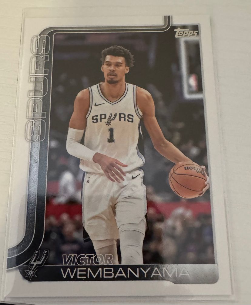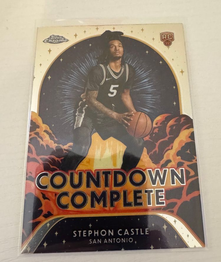 5 card Spurs lot including: Steve Kerr 2025 Topps Flagship Base Stephon Castle 2024 Topps Chrome Rc Insert Dejounte Murray 2021 Select Refractor Tim Duncan 2020 Illusions Living Legends Victor Wembanyama 2025 Topps Flagship base