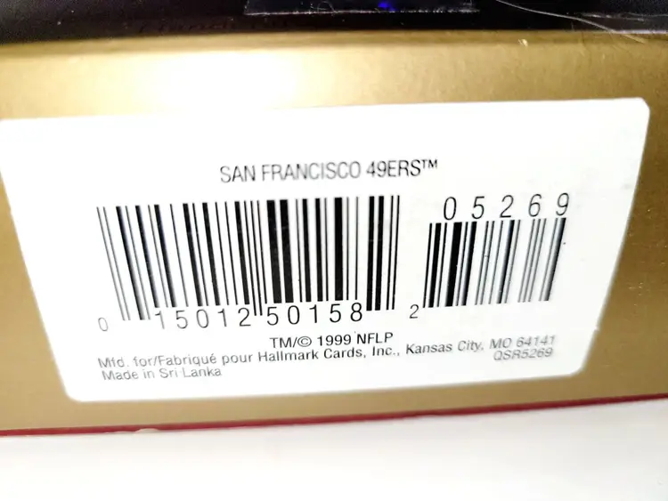 This vintage Hallmark Keepsake ornament, dated 1999, celebrates the San Francisco 49ers. Handcrafted with intricate detail, it's ideal for collectors or fans seeking nostalgia.