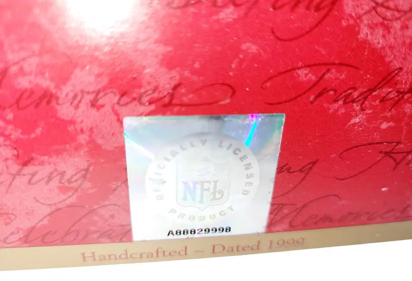 • Officially licensed NFL product • Handcrafted and dated 1999 • Sculpted by Tammy Haddix • Features "Go 49ers" banner and football design • Decorative use only