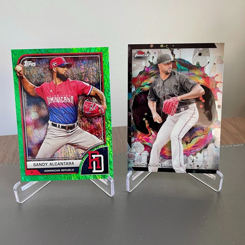 Sandy Alcantara (Miami Marlins) 2023 Topps World Baseball Classic Green Shimmer /75 & 2024 Topps Finest Rare