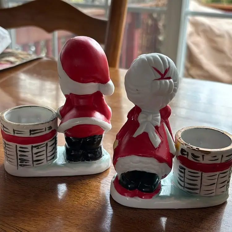 Vintage Little Luvkins kissy face hand painted porcelain votive holder pair. In excellent condition, you receive Santa and the Mrs. Measures 4.5” tall by 3.5” wide.