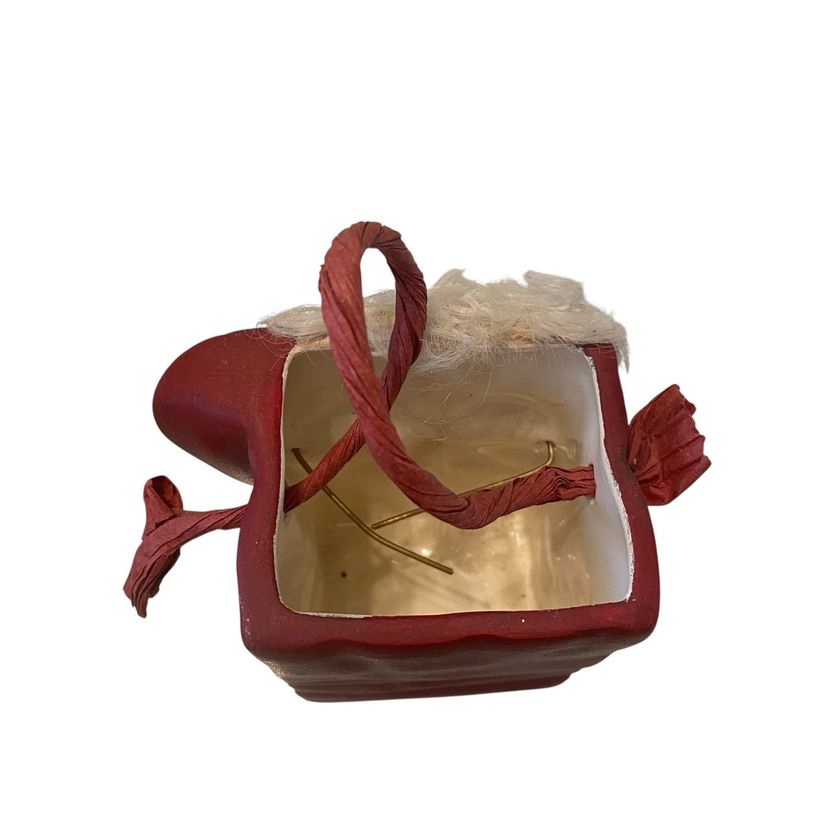 Santa Face Ceramic Gift Bag Vintage Planter glasses Embellished Made In USA 4.5in tall
