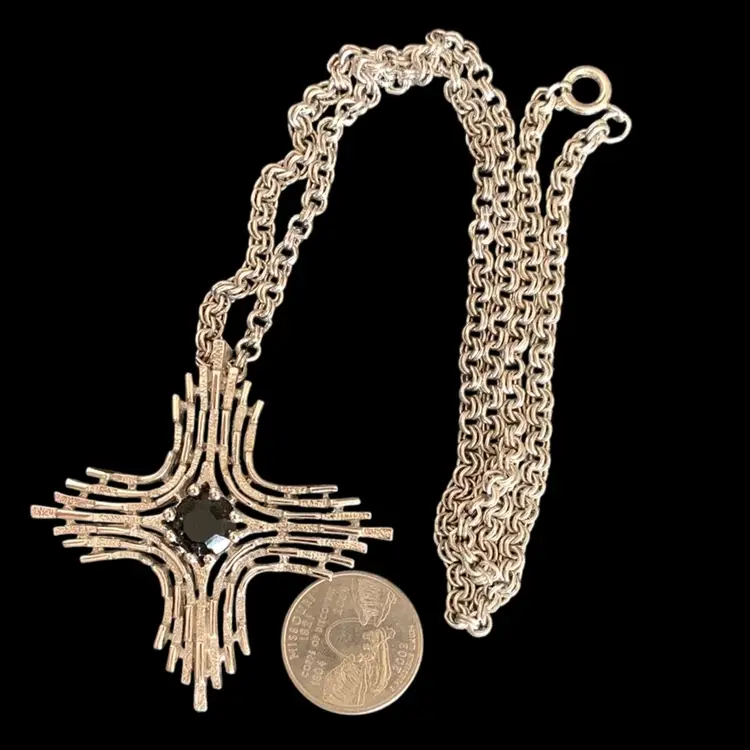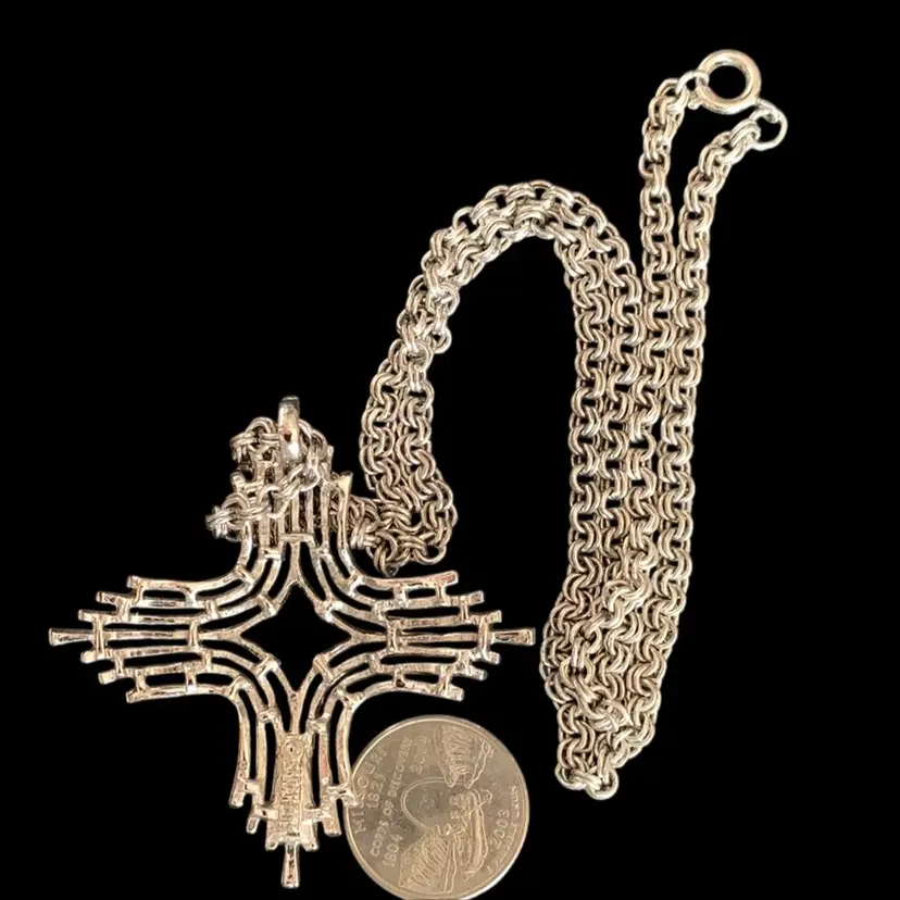 Pendant 2.5” X 2.5 “ 36 inches silver tone chain with c clasp