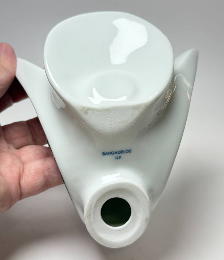 Spanish porcelain maker Sargadelos mines both the rich clay and the culture of Galicia – its motifs, architecture and colours – to create highly original designs, all hand decorated and finished at its two factories in the region. This bird-like figure is crafted from glazed porcelain and features a simple yet bold black and grey detailing along its exterior for a contemporary update of a classic Mediterranean aesthetic.