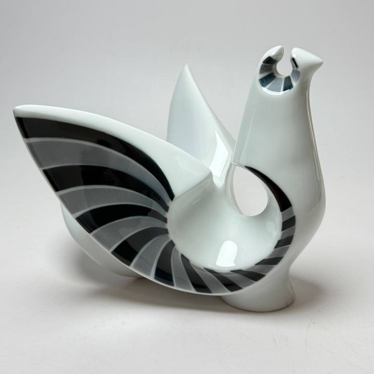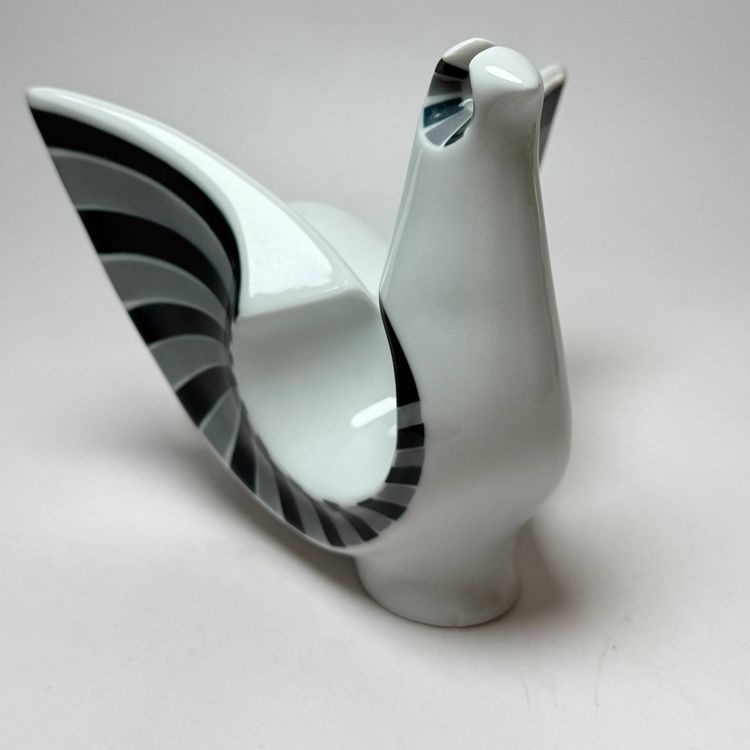 Sargadelos Pomba Paloma N°4 Spanish Porcelain Pigeon Bird Dove Black Gray White Stripe Mid Century Modern style MCM. 5.25" tall x 6" long x 4" wide. Small chip on front base as shown in last photo. No other issues.