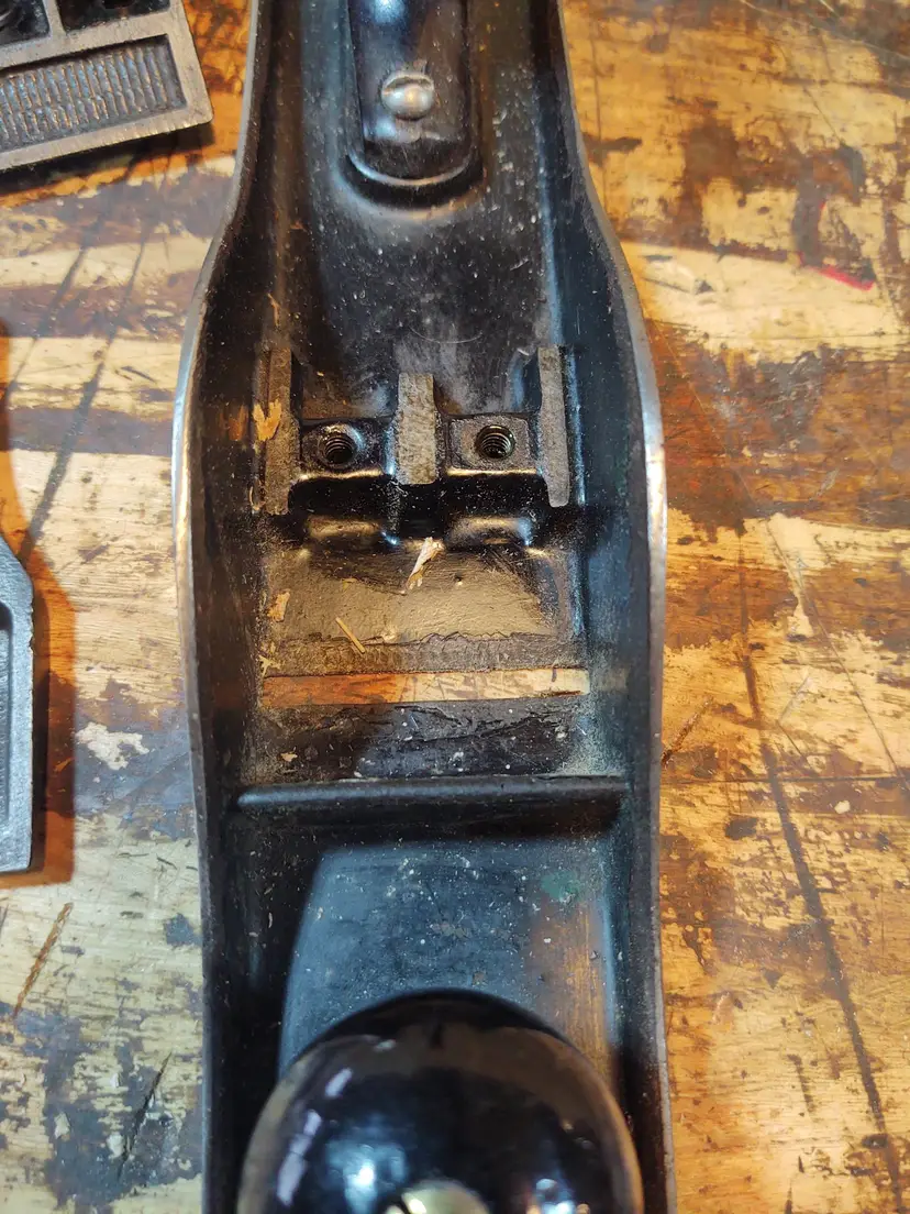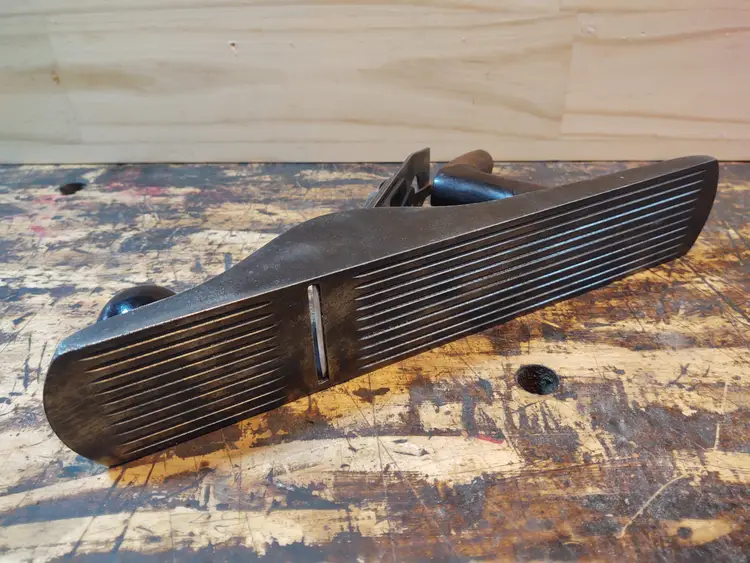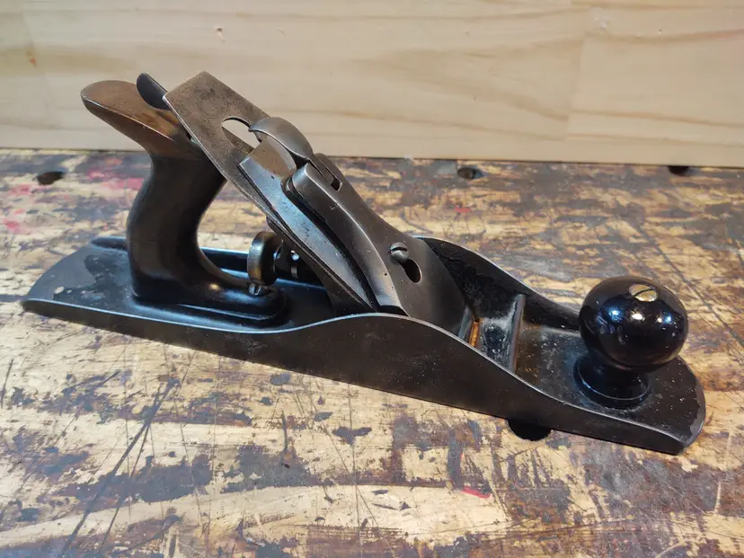 Tote repaired, furniture restored. This plane has been sharpened with a slight camber (as a Jack plane) for semi rough work. Japanning is original. All parts appear to be original and typical to the #5414 type 3 including the two part blade adjuster knob.