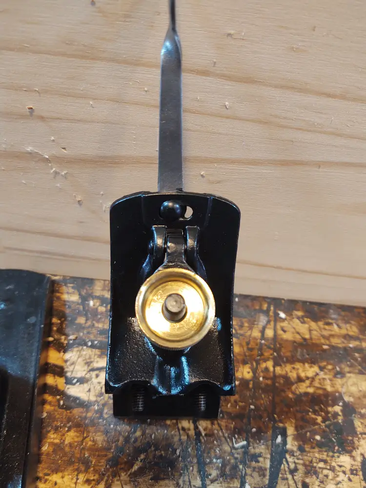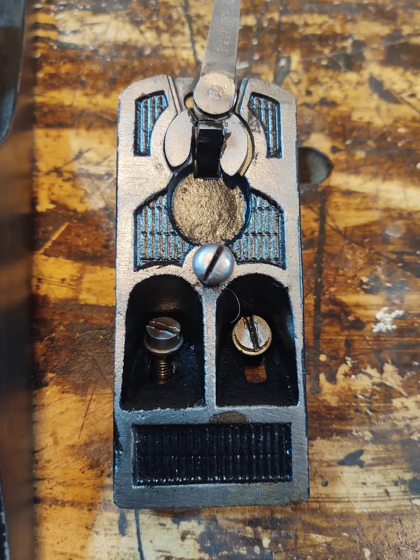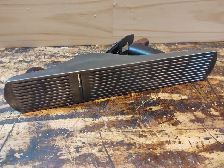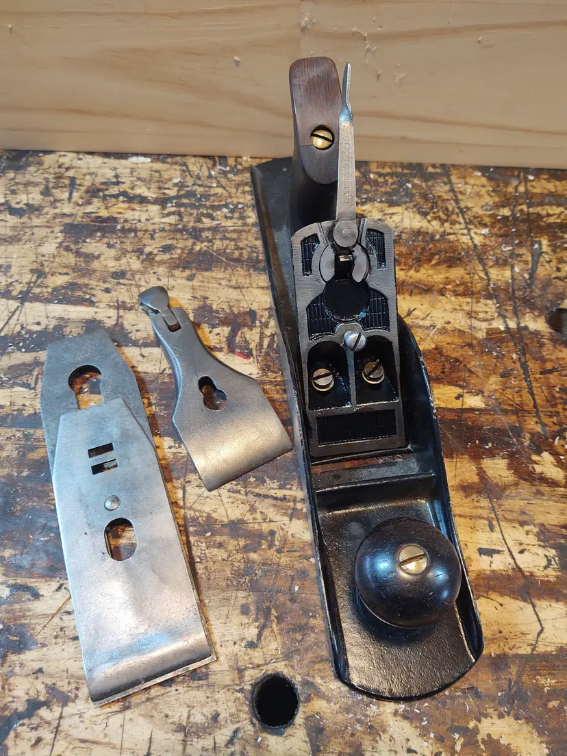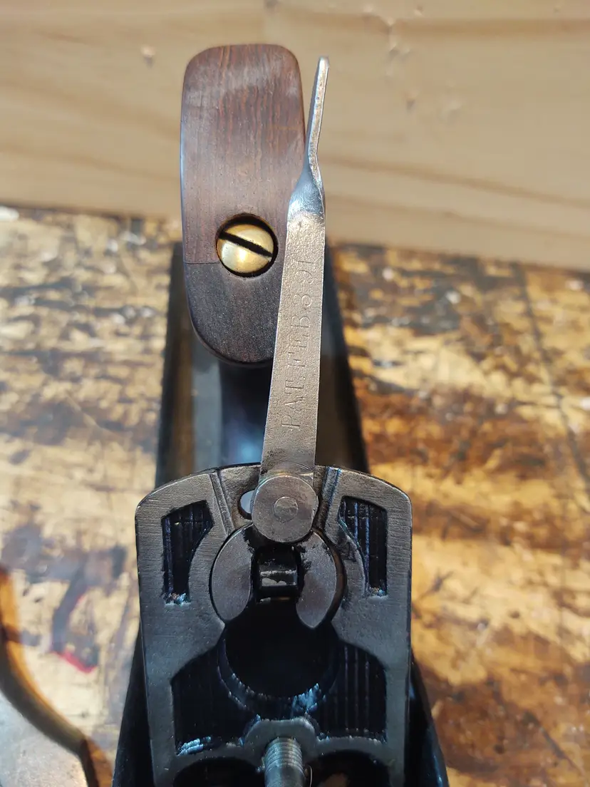 The Tote has been repaired, and the plane has been restored. This plane has been sharpened with a slight camber (as a Jack plane) for semi rough work (see photos). All parts appear to be original and typical to the #5414 type 2 including the horseshoe lateral.