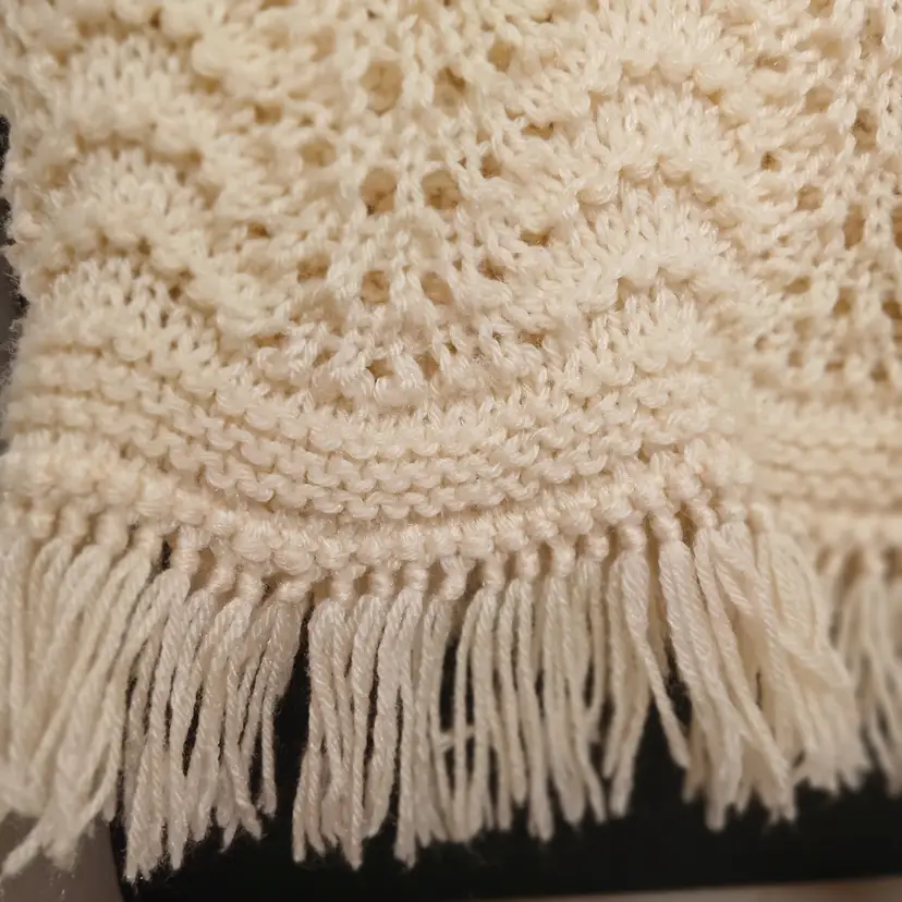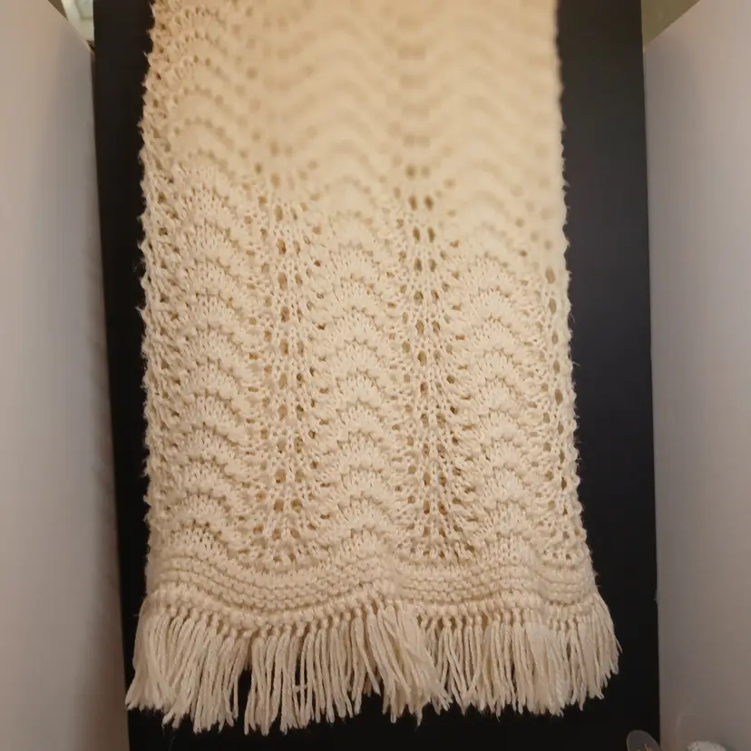 This beautiful vintage lap-size afghan blanket measures 60"L x 36.5" wide. Great for cool summer evenings on the porch! No stains, tears, or pulls. No pet hair. Appears to never have been used.