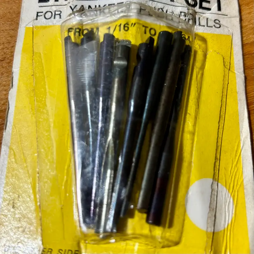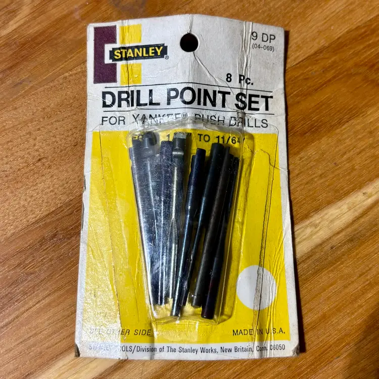 New in package Stanley 04-069 push drill bits. 8 piece set, sealed package. Package card has bends and creases as shown in photos. Let me know if you have any questions.