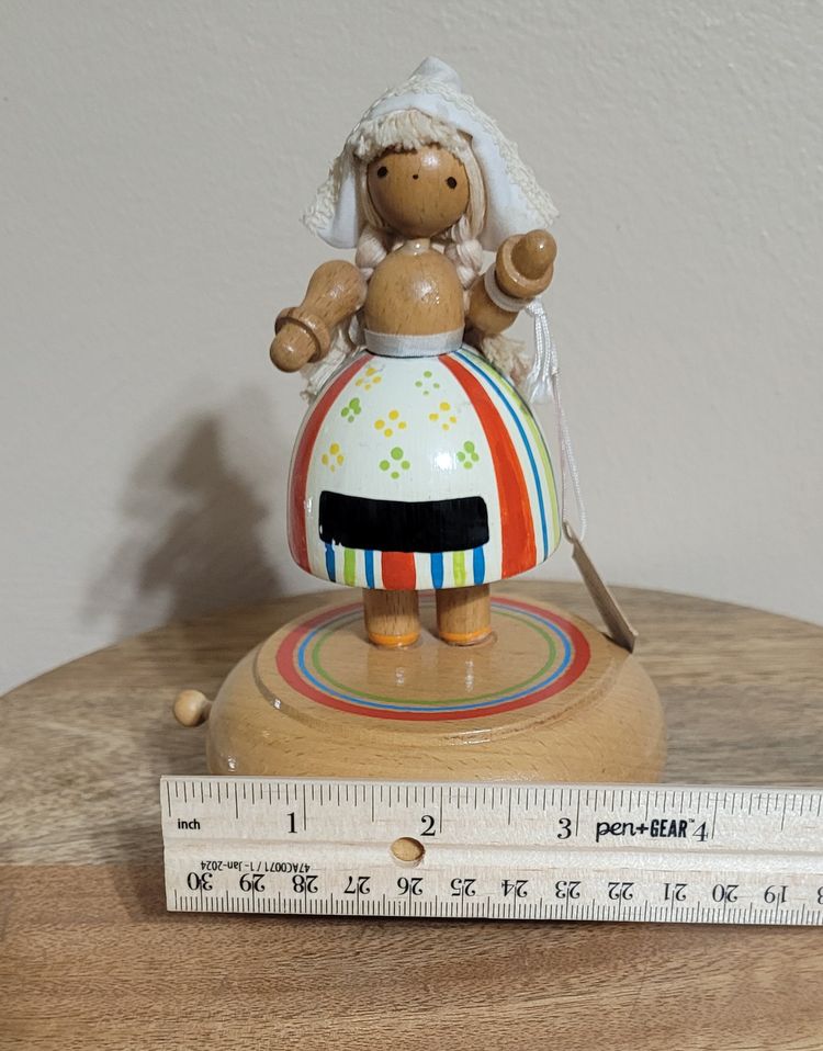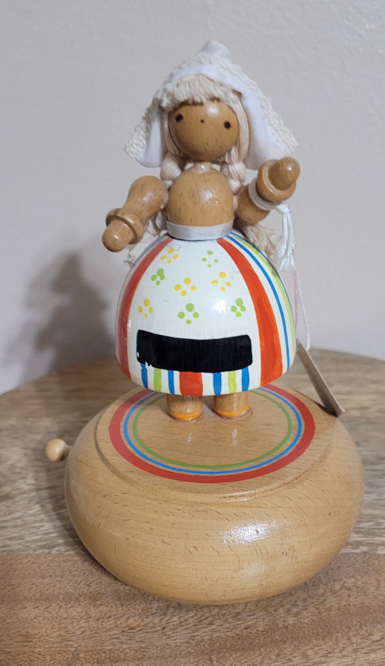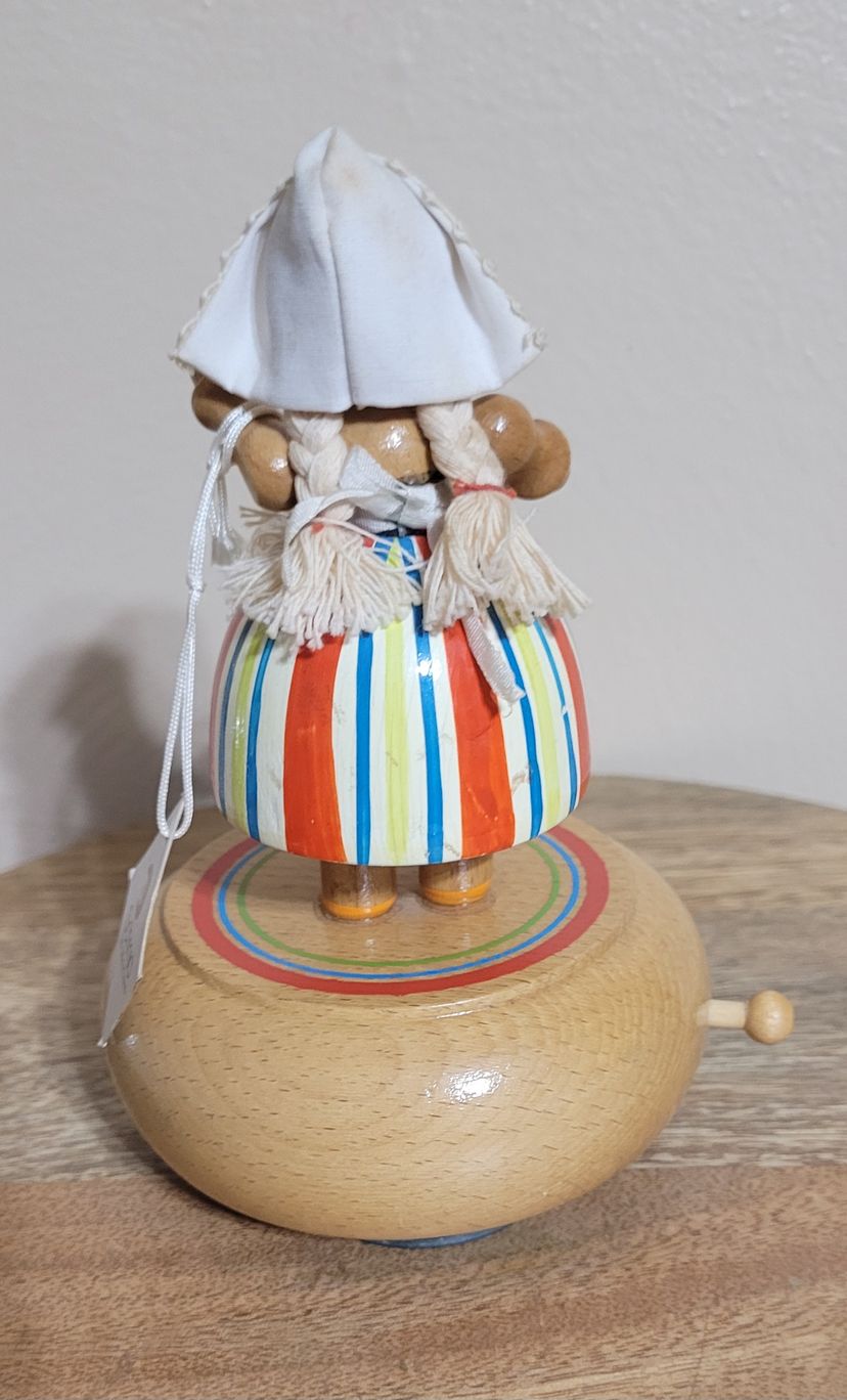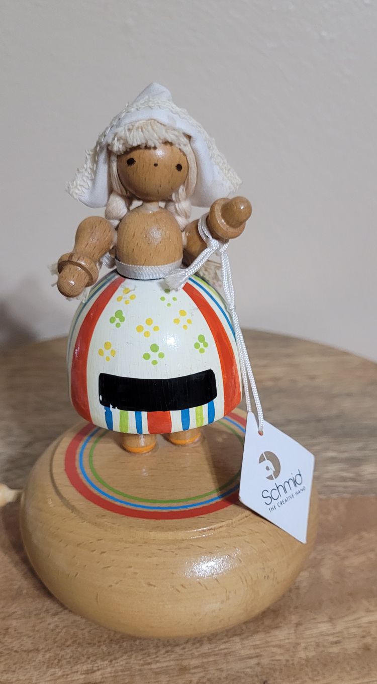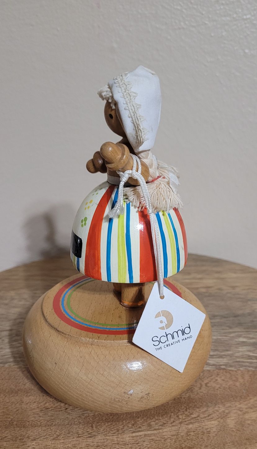 The Schmid Dutch Girl Wooden Figural Rotating Music Box is a vintage collectible from the pre-1900 time period. It features a charming design of a Dutch girl and plays a delightful tune as the figurals rotate. This unique music box is a decorative piece that adds a touch of nostalgia and whimsy to any collection.