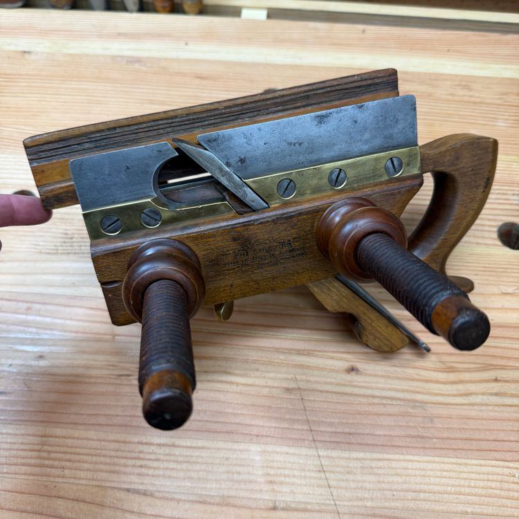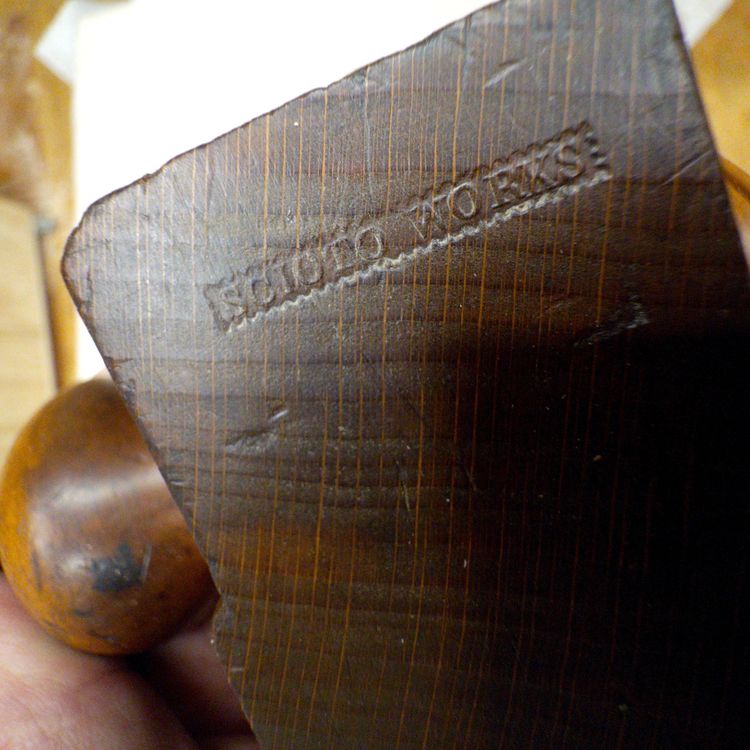 Scioto Works was a brand name used by the Ohio Tool Co. for planes made from "second grade" timber. They began using the name after their 1893 merger with the Auburn Tool Co. The plane is marked 101, which was Ohio Tools' catalog number for plows with boxwood washers, nuts, and arms. This plane does not have boxwood arms.