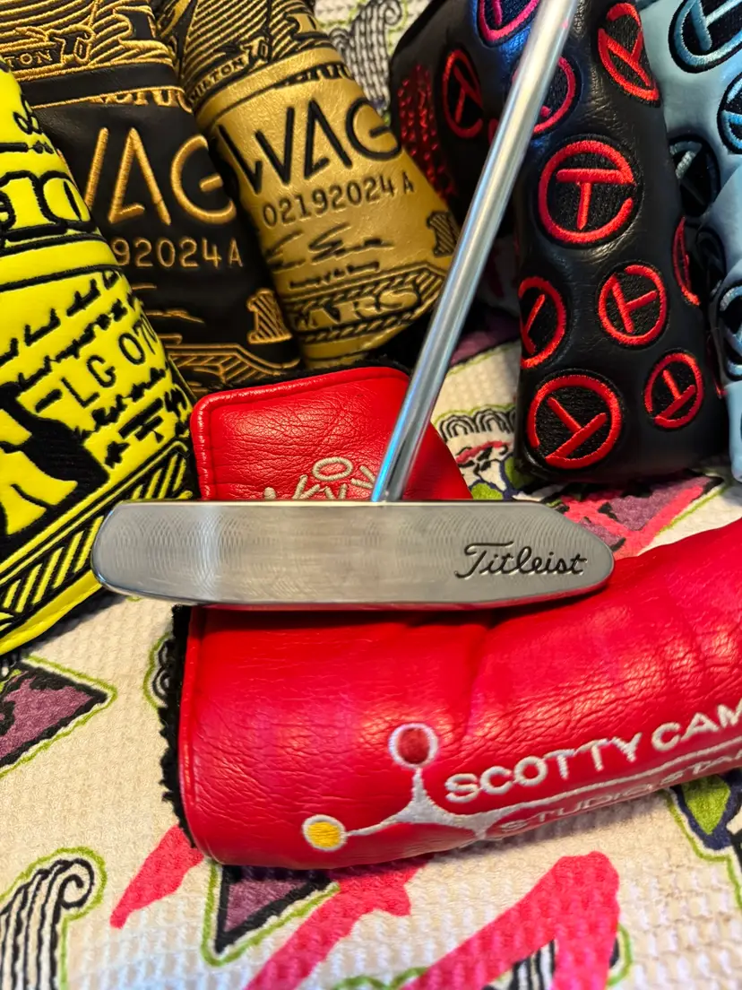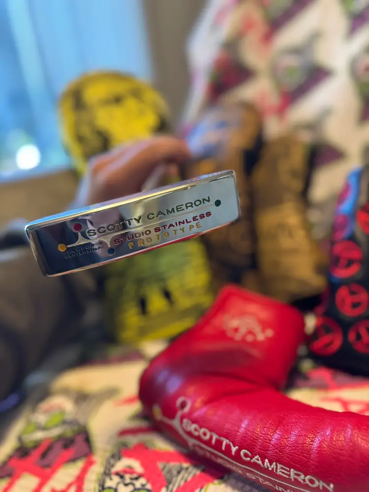 Here for sale is a Scotty Cameron Studio stainless Center shafted Newport Prototype. This putter is playing 35 Inches. It is in beautiful condition. Paint fill has been redone and the Putter has been polished. It comes with a Scotty Cameron Baby t grip. It comes with a fair condition Studio Stainless Head cover. Hard putter to find.