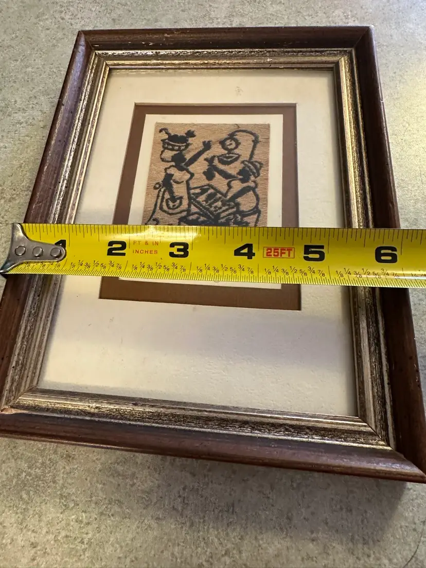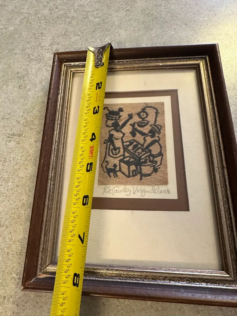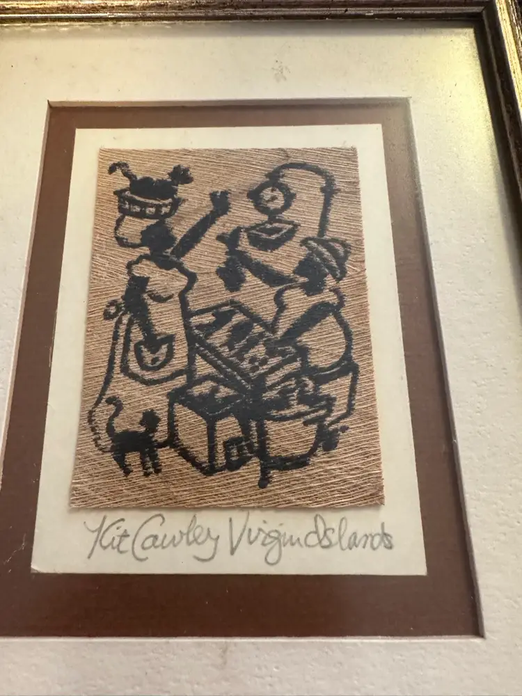 This artwork is a screen print created by Kit Cawley, an artist known for creating folk art pieces in the U.S.