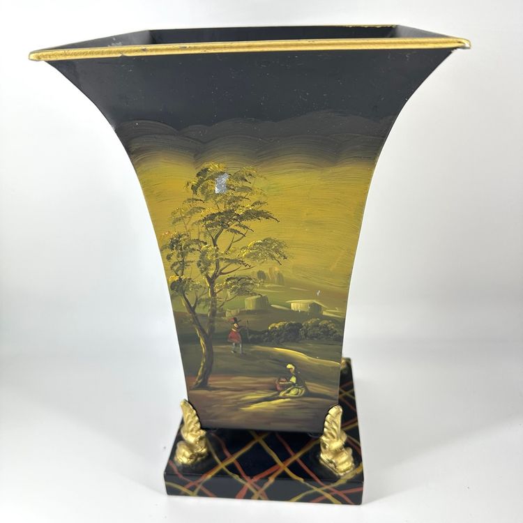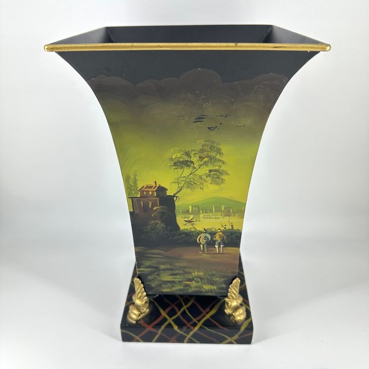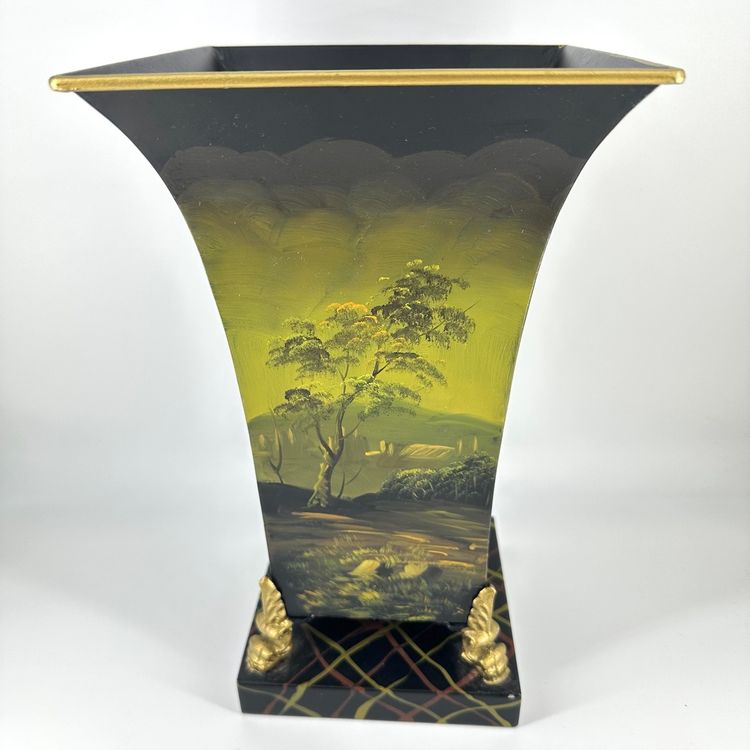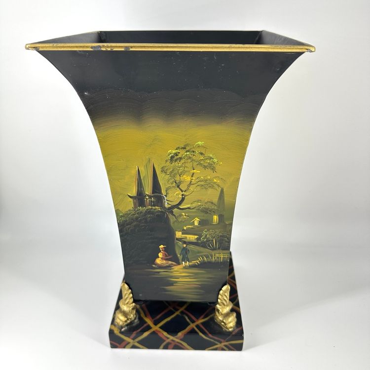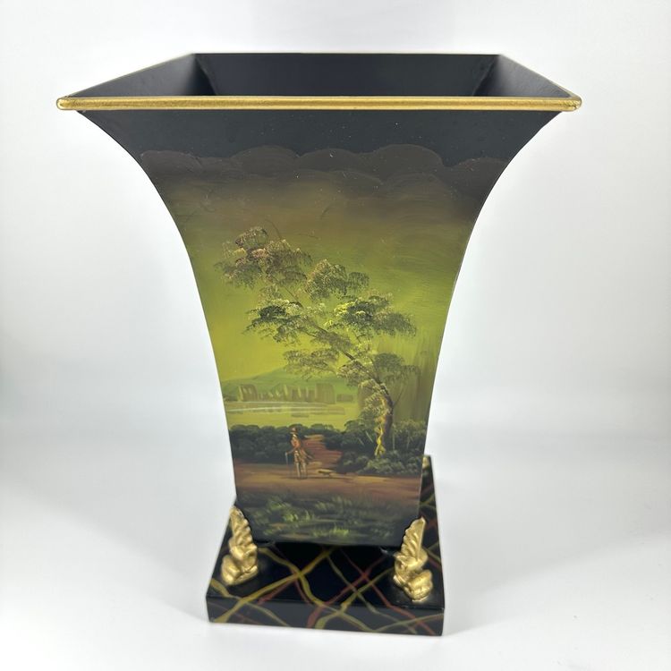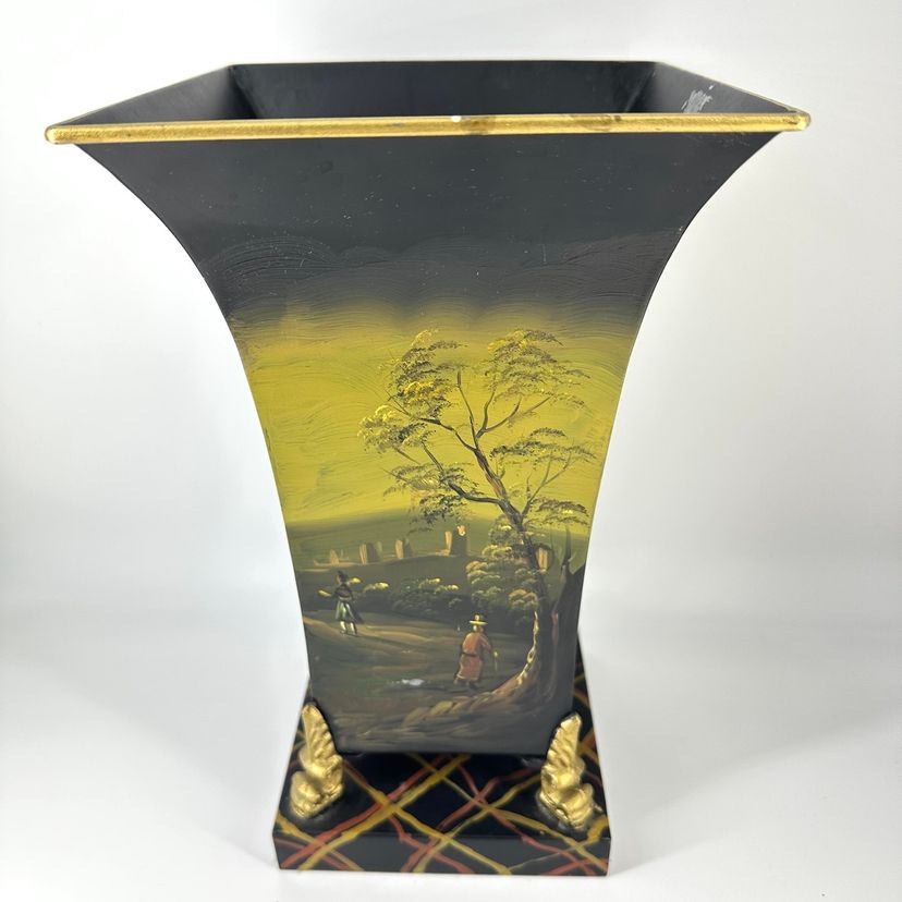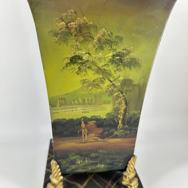 This set of 2 Hand Painted Decorative Vases are both approximately 12” in height and 7” in width.Both do have some wear in the paint which can be seen in the photos. Is marked “Made In Taiwan” on the bottom of the vases.