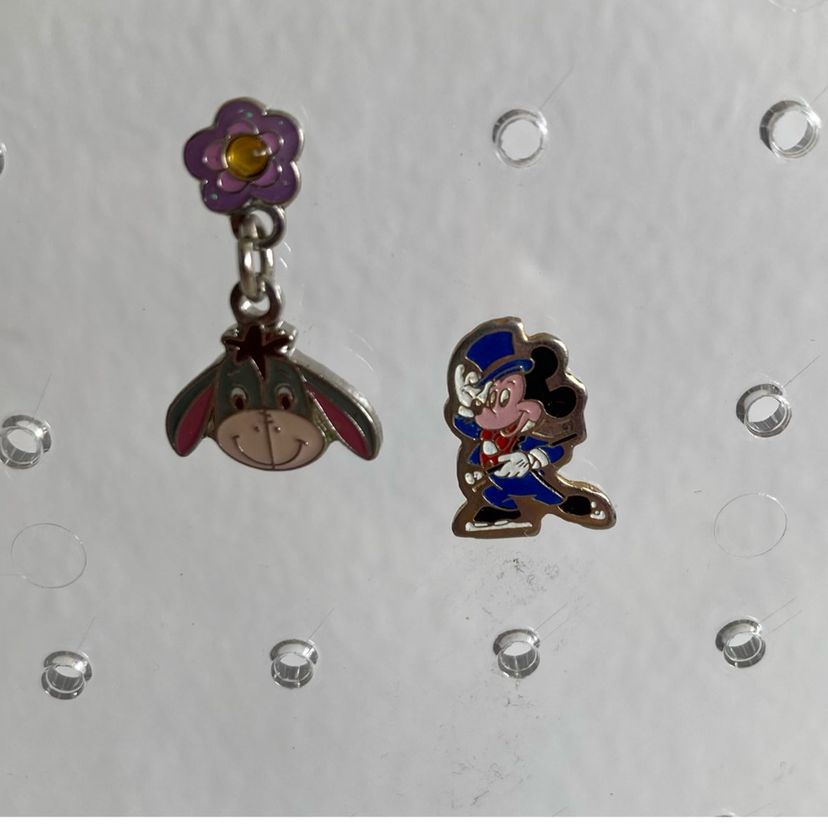 Set of 2 vintage Disney earrings featuring Eeyore and Mickey Mouse. They are both enameled metal . Mickey measures 1/2” x 5/8”. Eeyore measures 1/2” x 7/8”. Eeyore is marked Disney and Mickey is marked Walt Disney Productions Taiwan. There is a little wear on the back as shown in last photo.