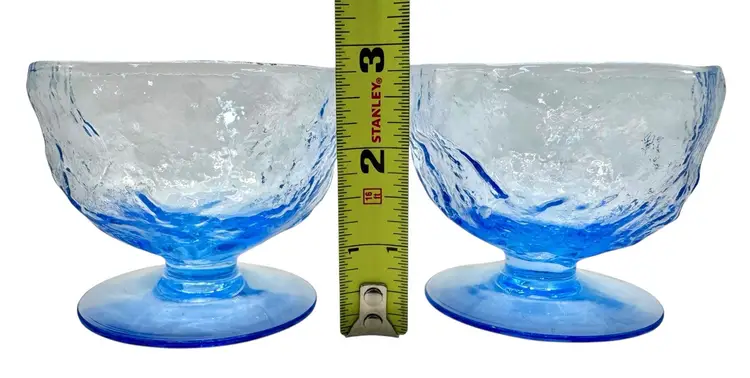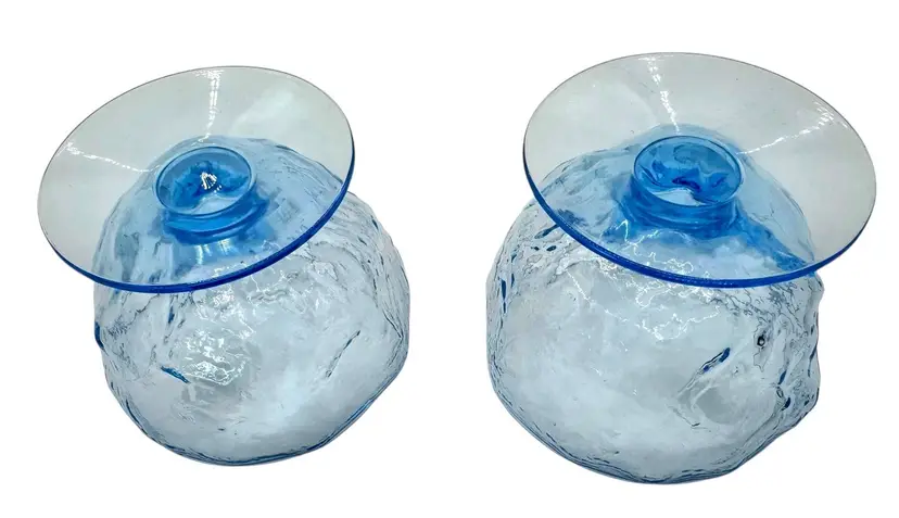 Two light blue sherbets with a crinkled texture.