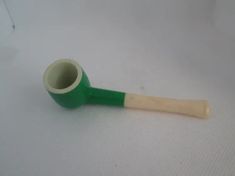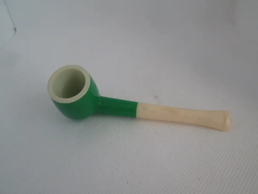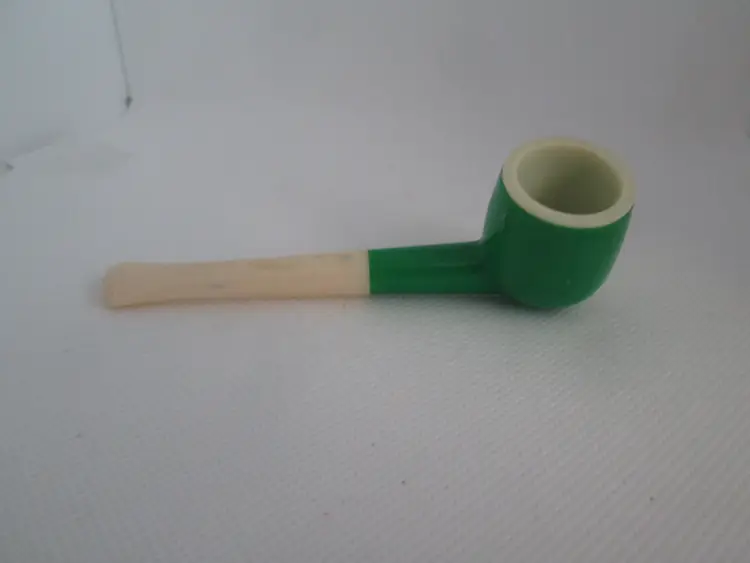 Set of 3 - 1950's Green and Yellow Triple Bubble Blowers Toys. They are all in good played with condition. The green blowers measure 4" and the yellow triple blower measures 5" long.