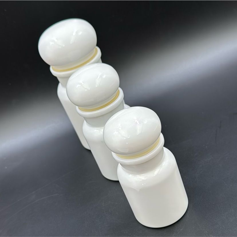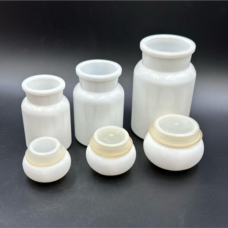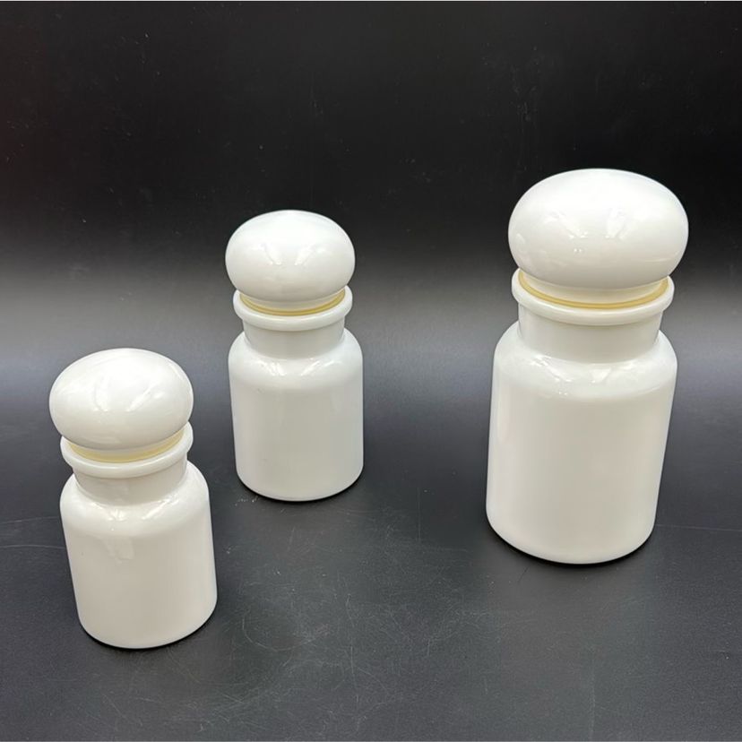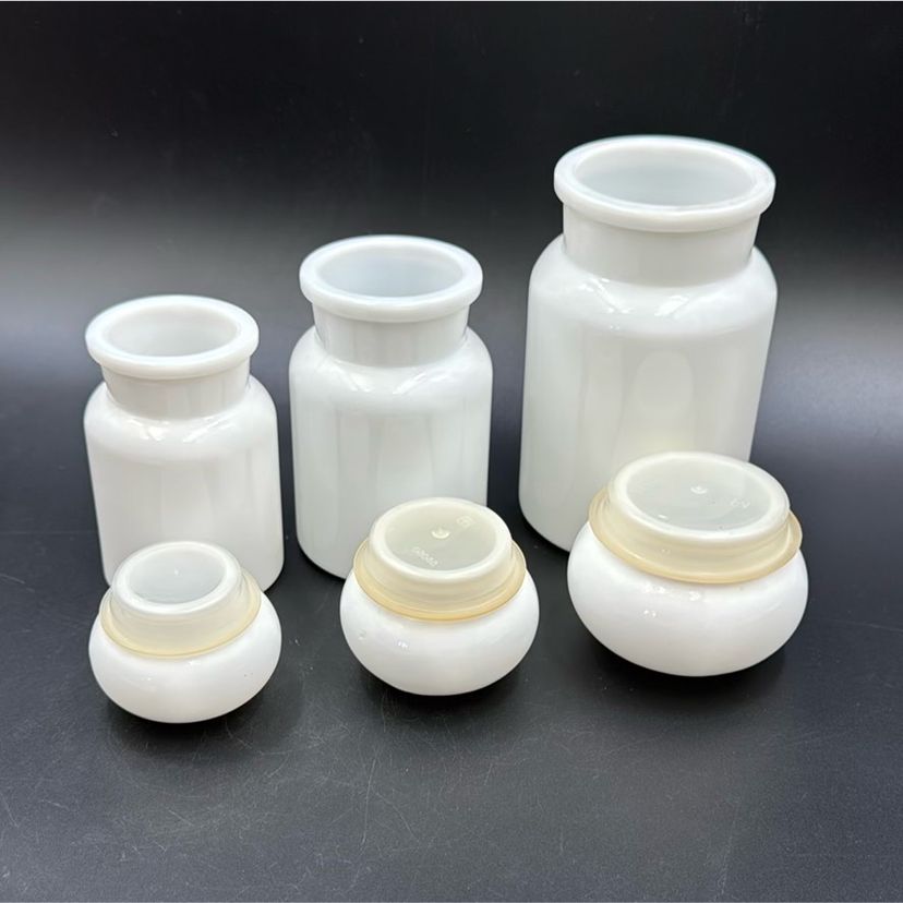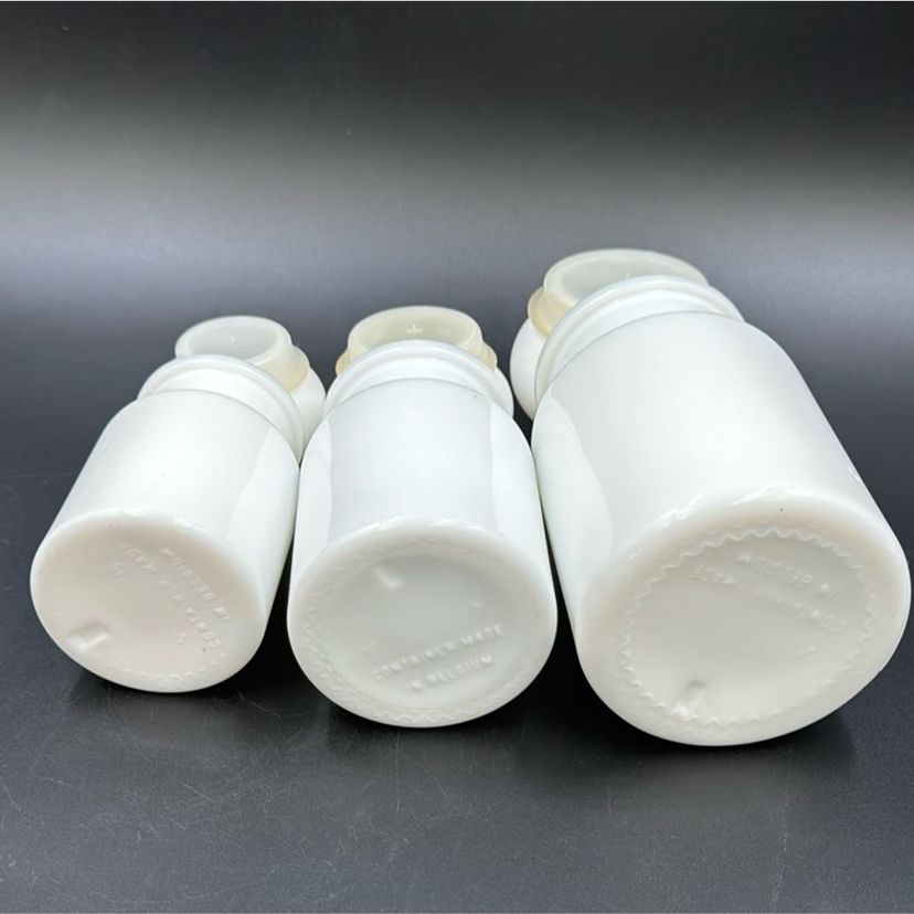 61/2”T 31/2”W.. 51/2”T 21/2”W..41/2”T 21/4”W.. no chips, cracks or brakes and wonderful vintage condition very clean containers