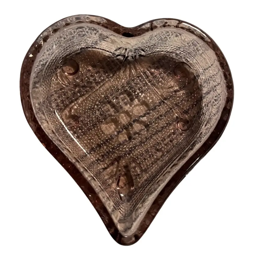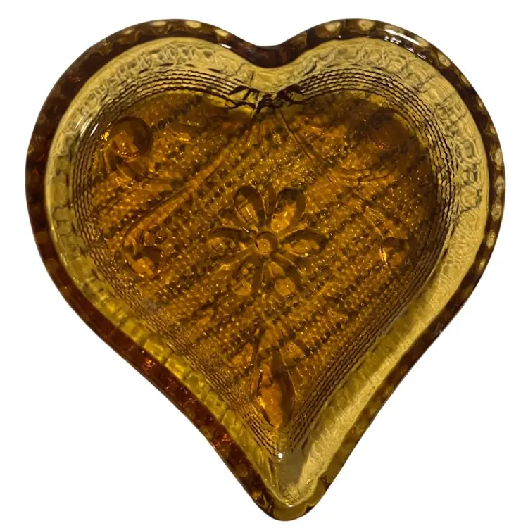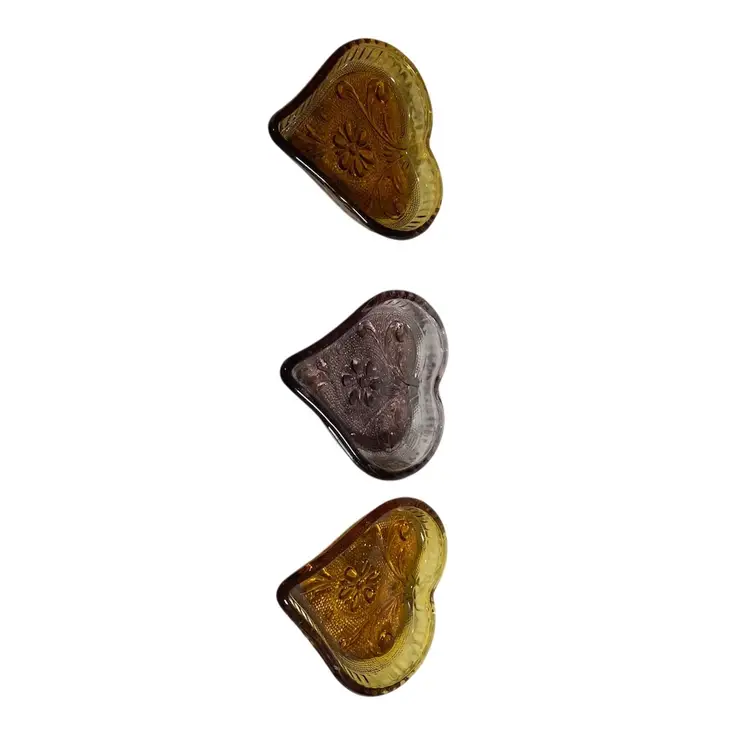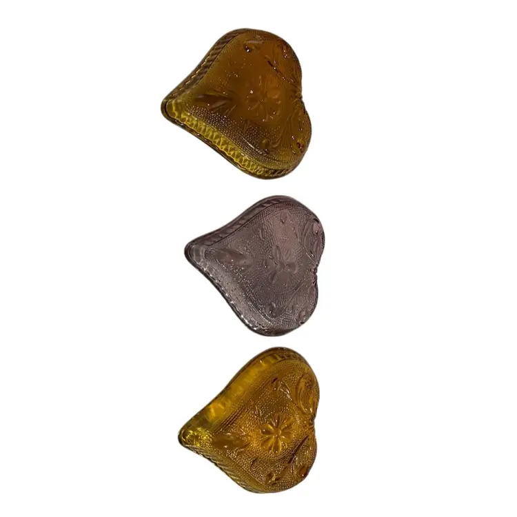 2 Amber color 1 light purple 3 1/2” tall 3 1/4” across widest part of the heart No chips or cracks