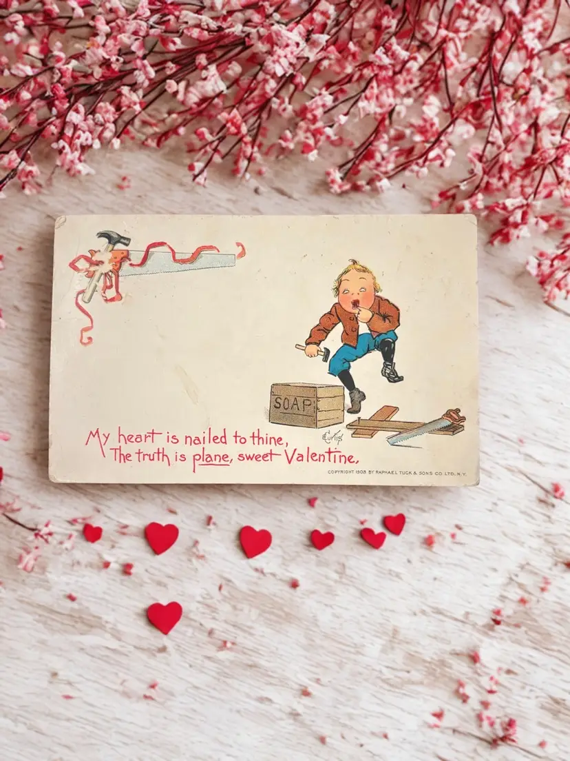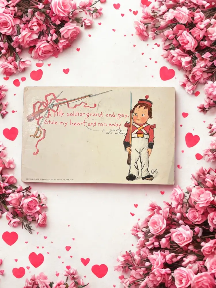 This listing is for a set of 4 used, antique Valentines postcards by artist E. Curtis and published by Raphael Tuck & Sons. They are undivided back, but postmarked between 1905 and 1914. All have been used and written on. 3 out of 4 postcards have the stamps still in place. Because of their age, the postcards do show some wear, as seen in photographs. This wear includes, but not limited to: soft corners, writing, ink, light staining. Two postcards have paper tears to front side of postcard- can be seen in photographs. I will happily answer any questions regarding condition via messenger.