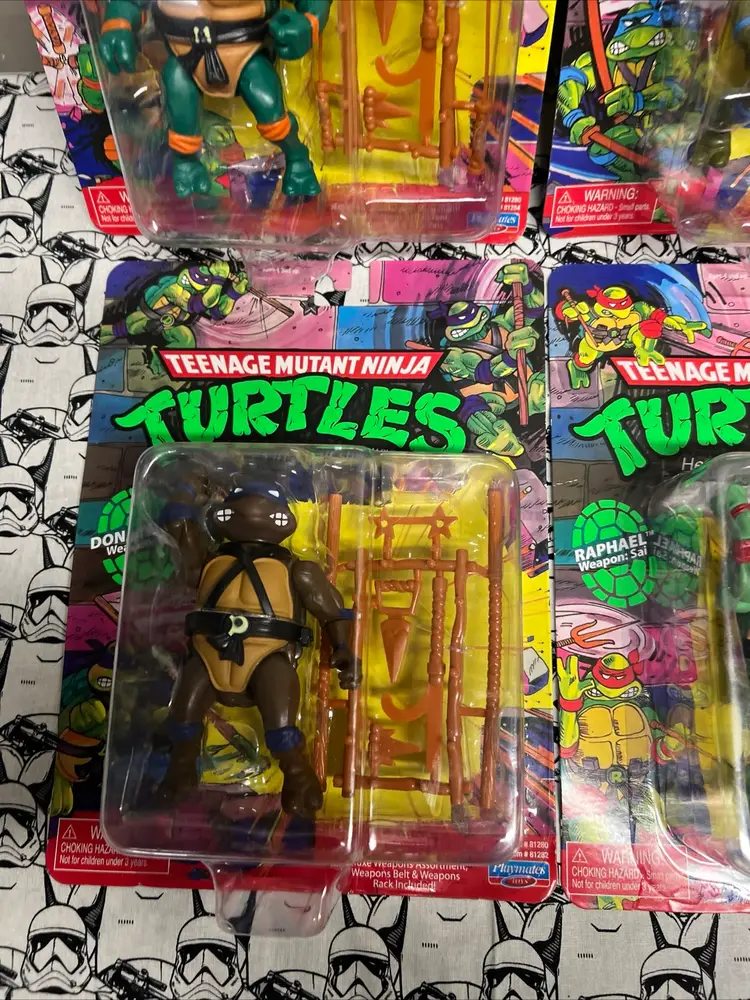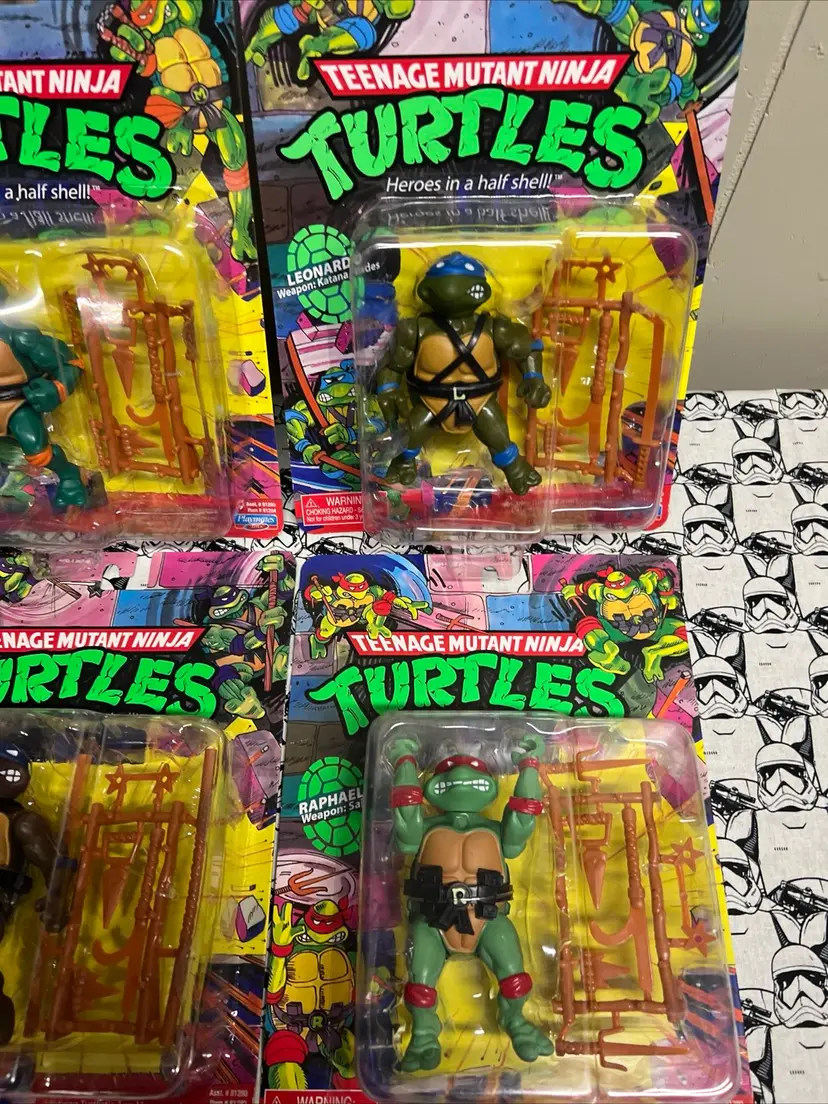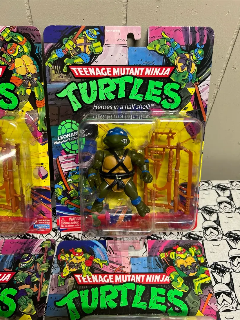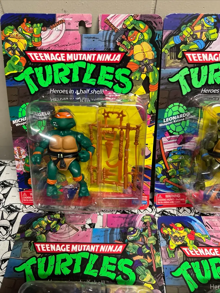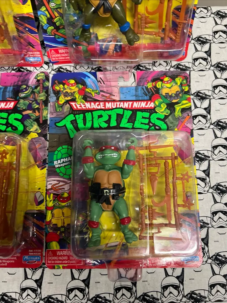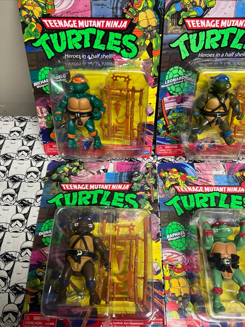 This set of four Michelangelo, Donatello, Raphael, and Leonardo Teenage Mutant Ninja Turtles action figures is a must-have for any TMNT fan. The figures are part of the 2021 Playmates Retro Reissue Classic Figures collection and come in their original packaging, unopened and in mint condition.