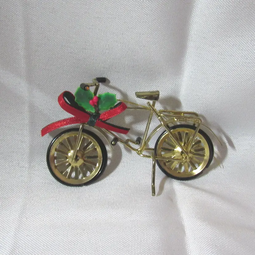 Set of 4 Vtg Brass Christmas Ornaments - Sled/Bike/Sleigh/Baby Carriage
