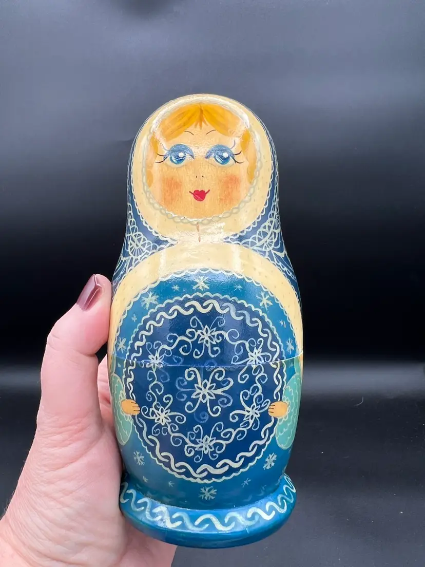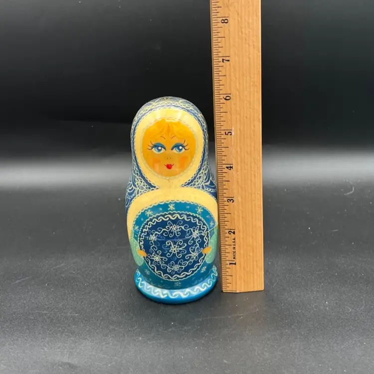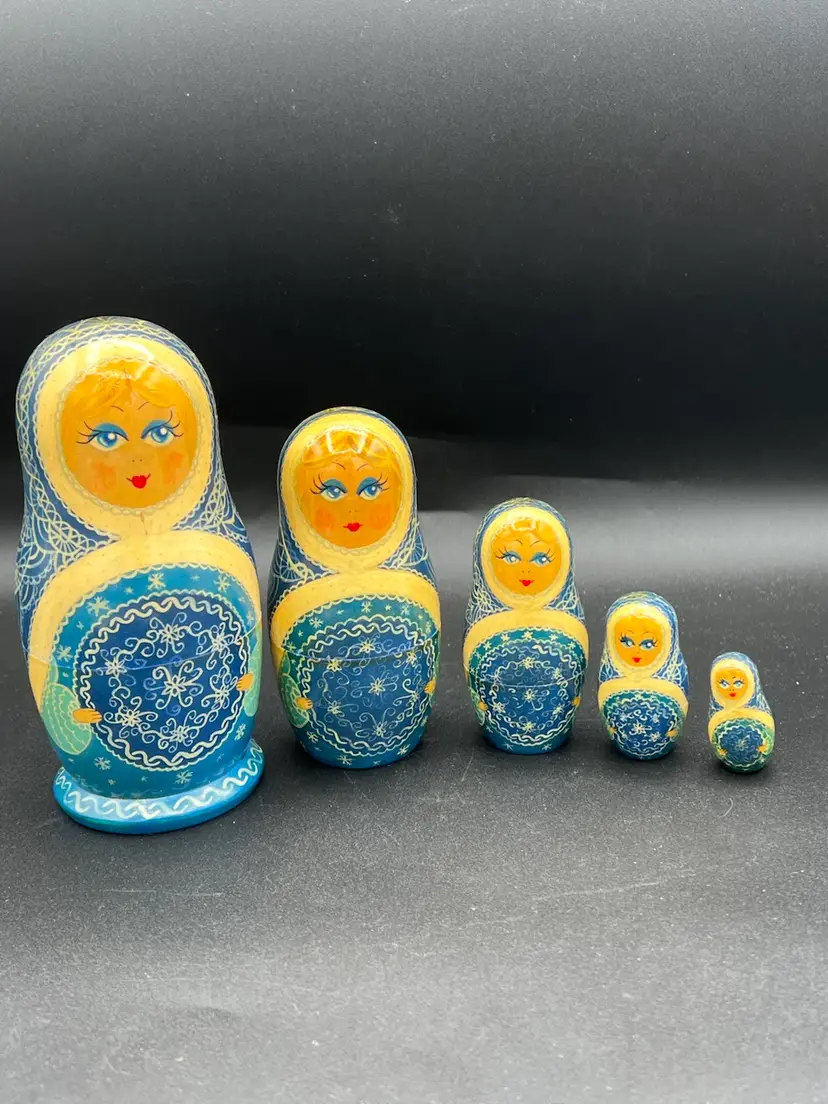 032. Set Of Five Russian Dolls Blue Signed 1990