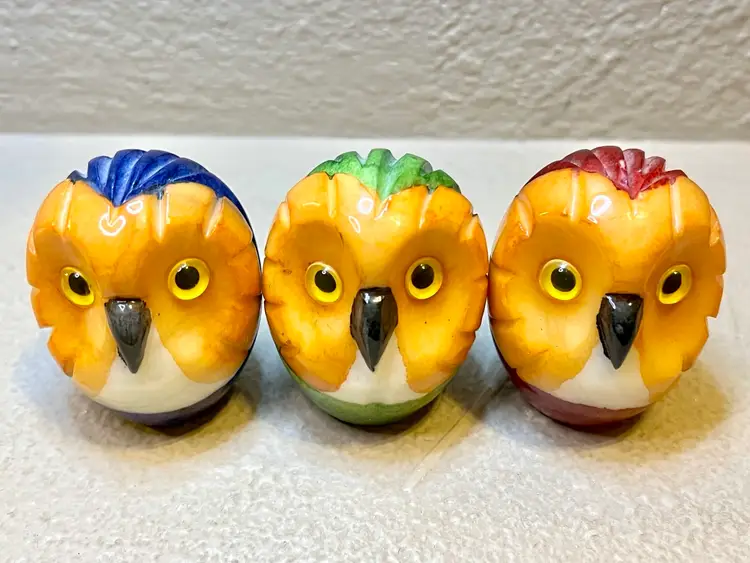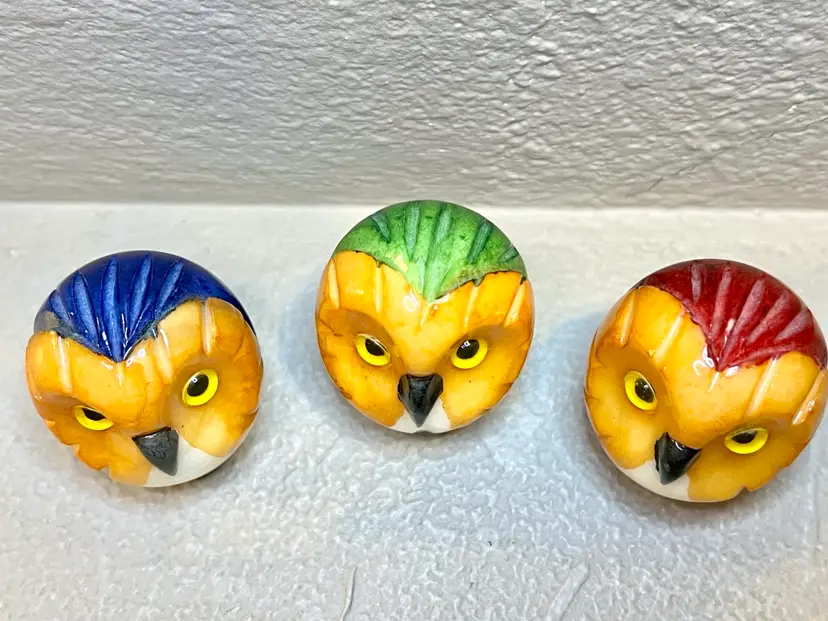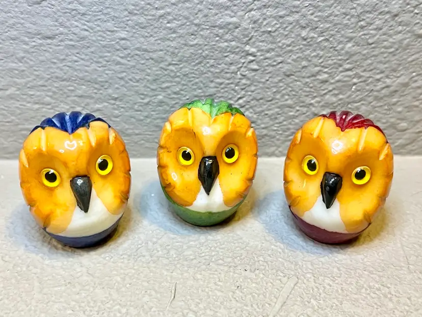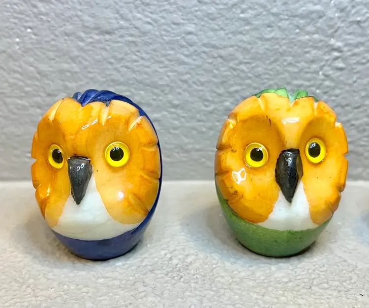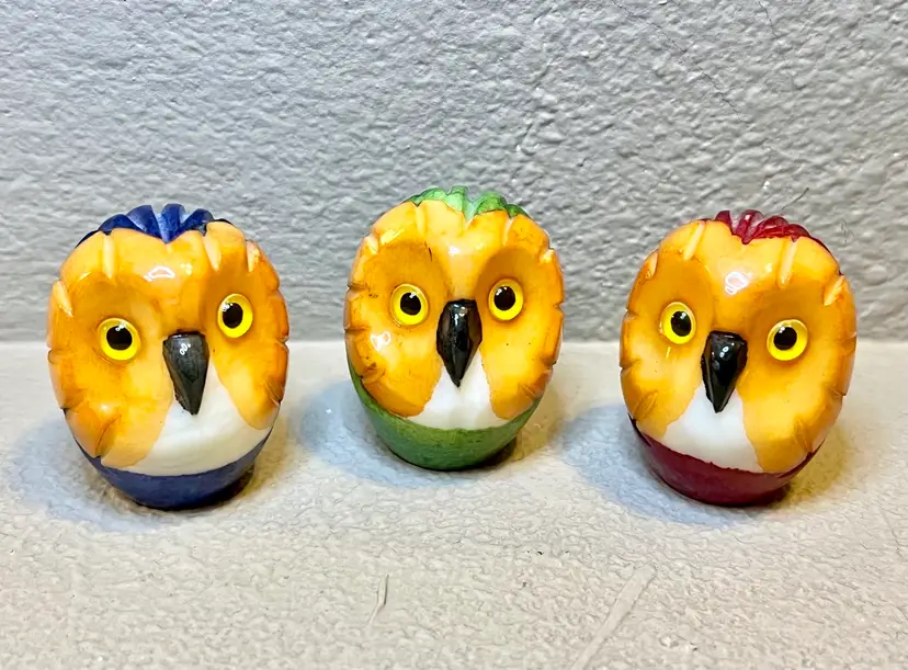 🦉These sweet little vintage 70’s hooters are made of carved alabaster, and hand painted! They likely originate from Italy, but do not have the original stickers. They are in like new condition. 2.5” each. Scoop them up for this discounted deal (typically go for 15-20$ each)!