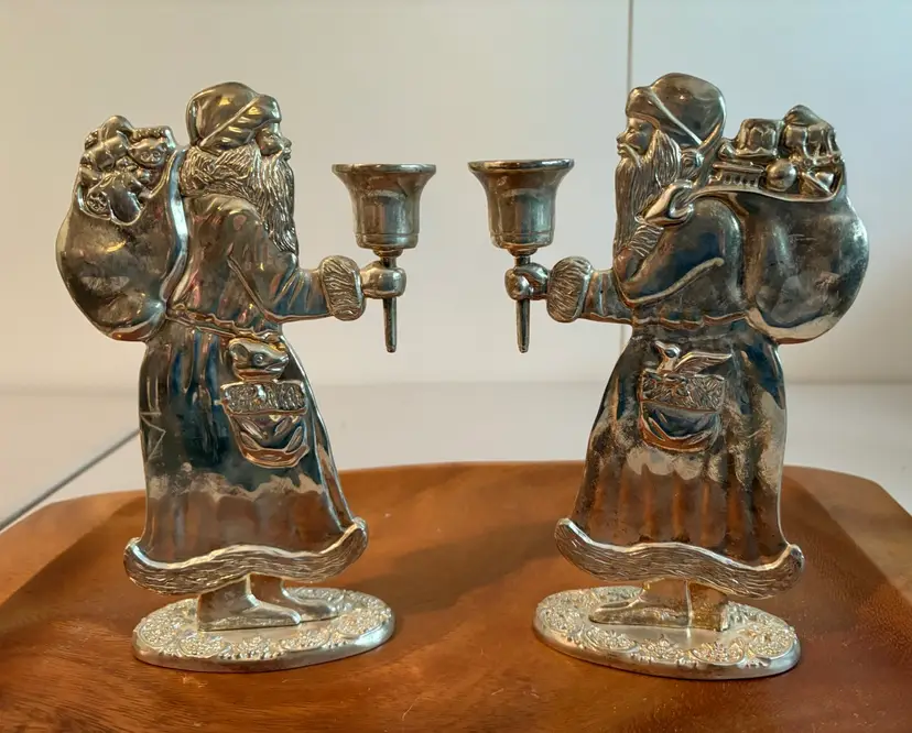 Just perfect for the holidays. Tall silver plated Santas for your holiday decor. 8” tall