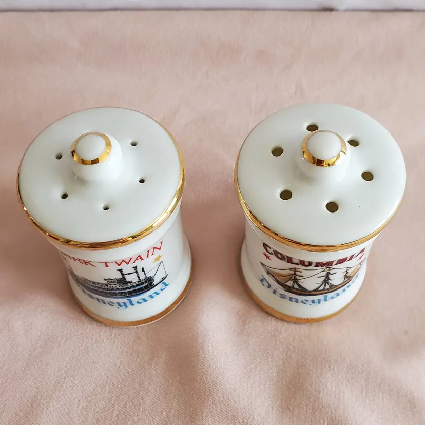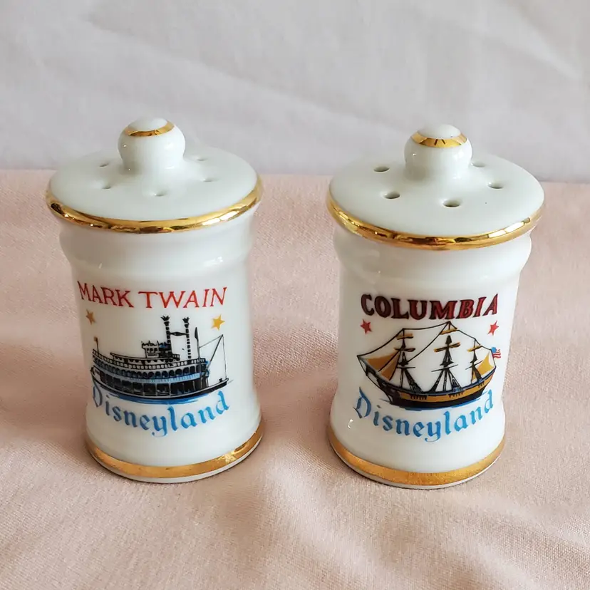 Set of vintage Disneyland Columbia and Mark Twain ceramic salt and pepper shakers. NOS-Never Used.