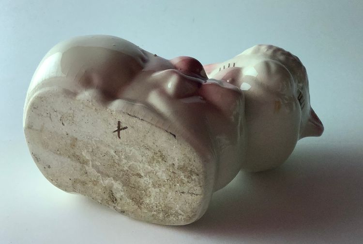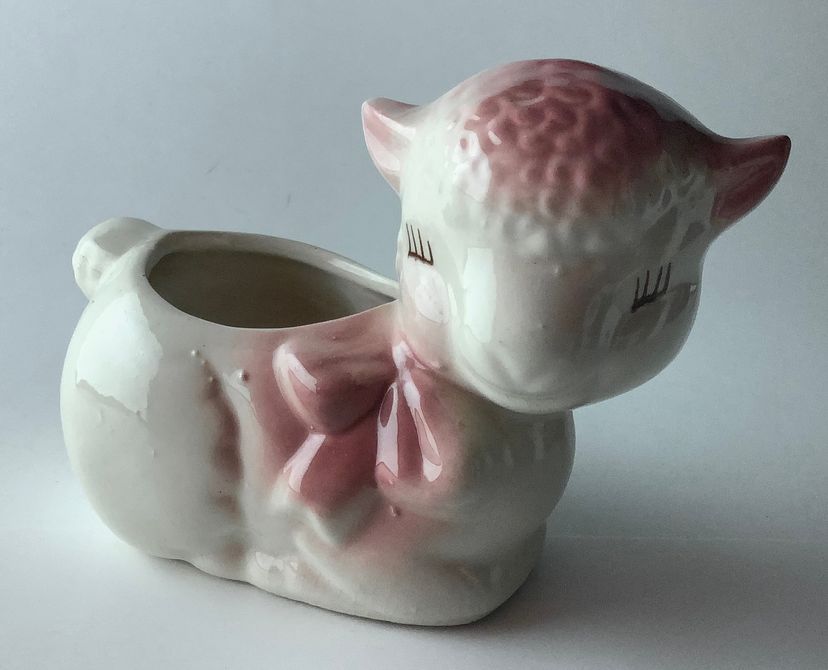 This is a cutie indeed. She measures 4.5” x 3.25” x 2.25”. A little red paint under glaze on back in good condition. Please see photos. I say she cuz she’s pink and I’ve seen blue ones. 👍🏼❤️😎💥 thanks for looking! I ship 3 day, UPS and pack securely, bubble wrapped double boxed.