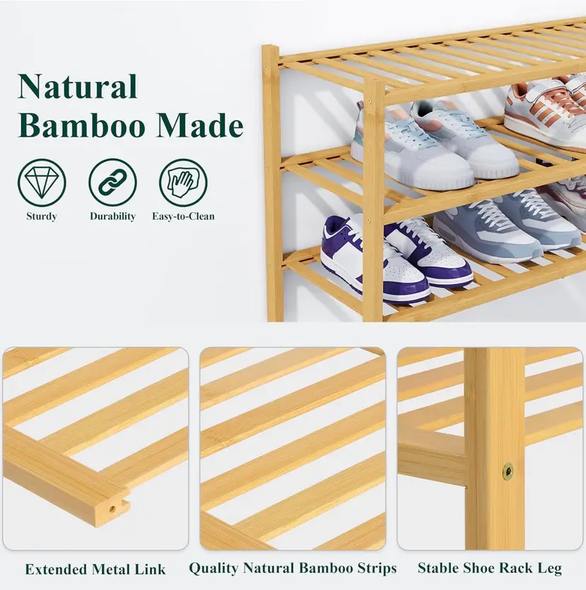 [Large Capacity & Sturdy] 3 tiers measuring 26.77" W × 11.02" D × 19.49" H, each shelf holds up to 30 lbs, suitable for shoes, bags, baskets, plants, or other daily essentials