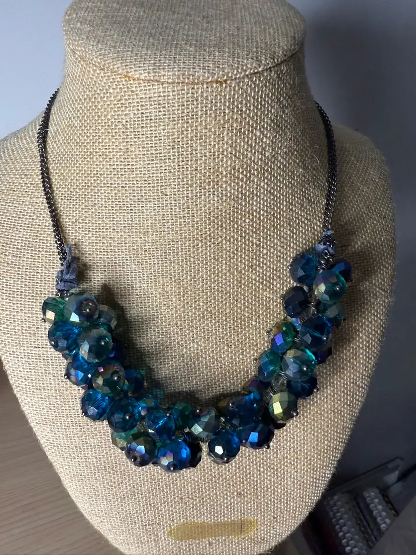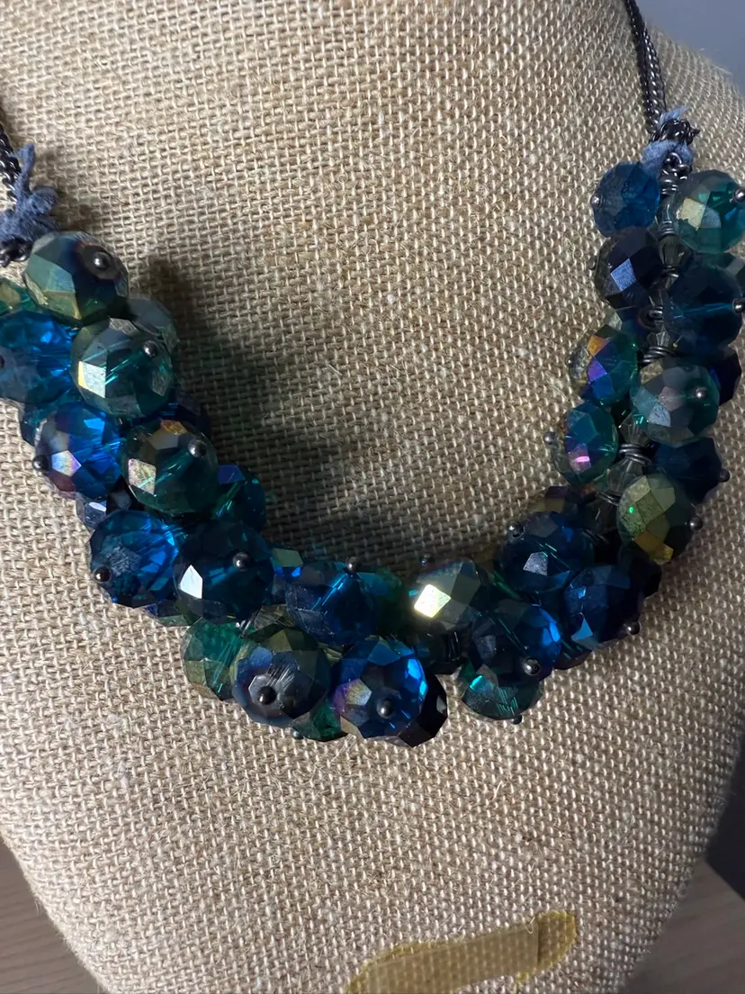 Signed Ali Khan Blue Crystal AB Silvertone Necklace