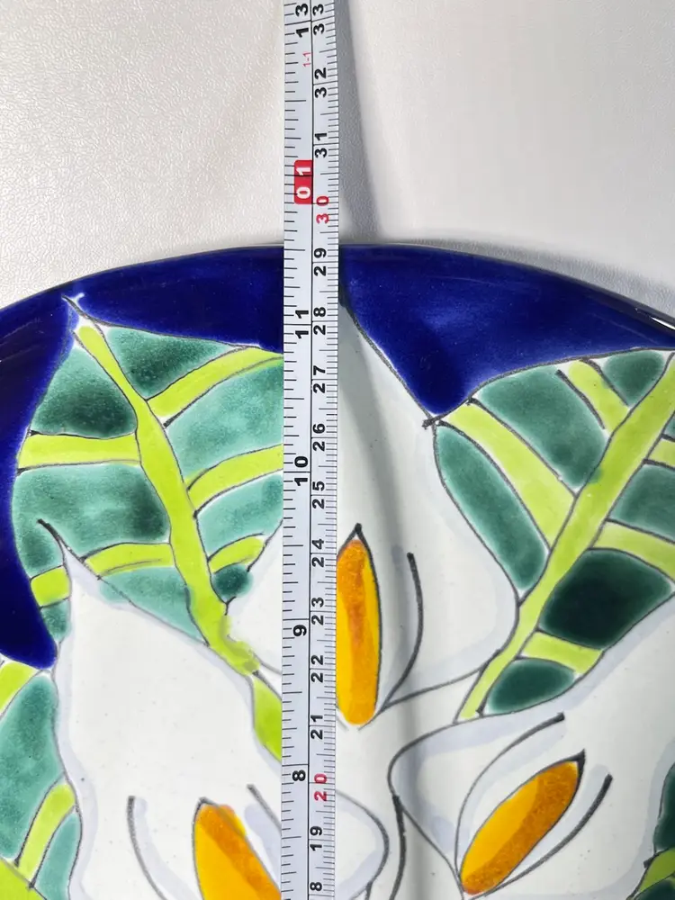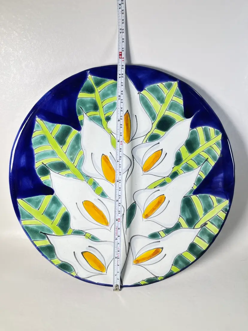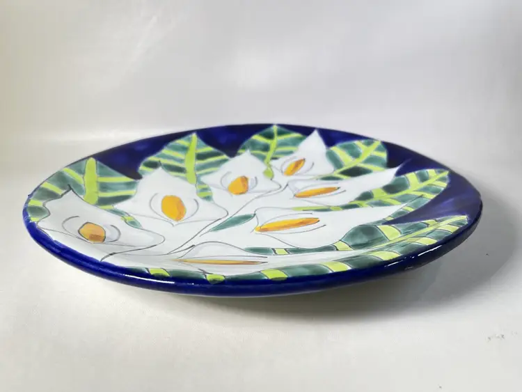 Beautiful plate with bright florals. Has wall hanger, so it’s all ready for display!