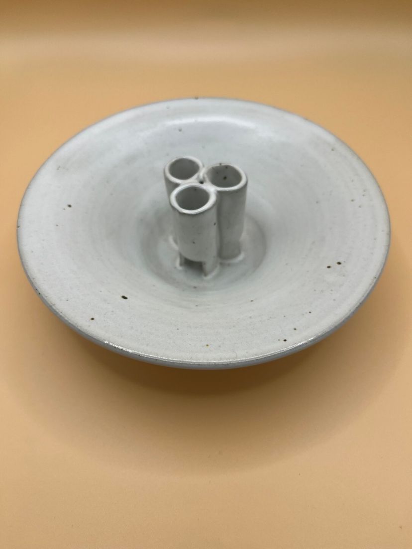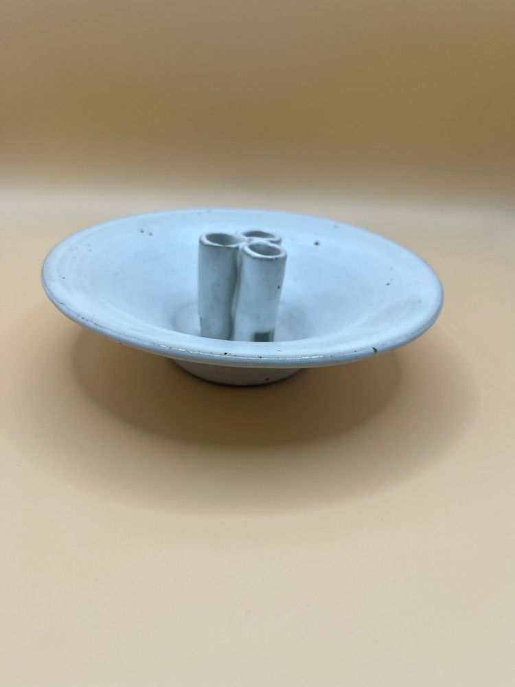 Get ready for spring flowers with this studio pottery flower frog dish. It measures 6 1/4” across. No chips or cracks.