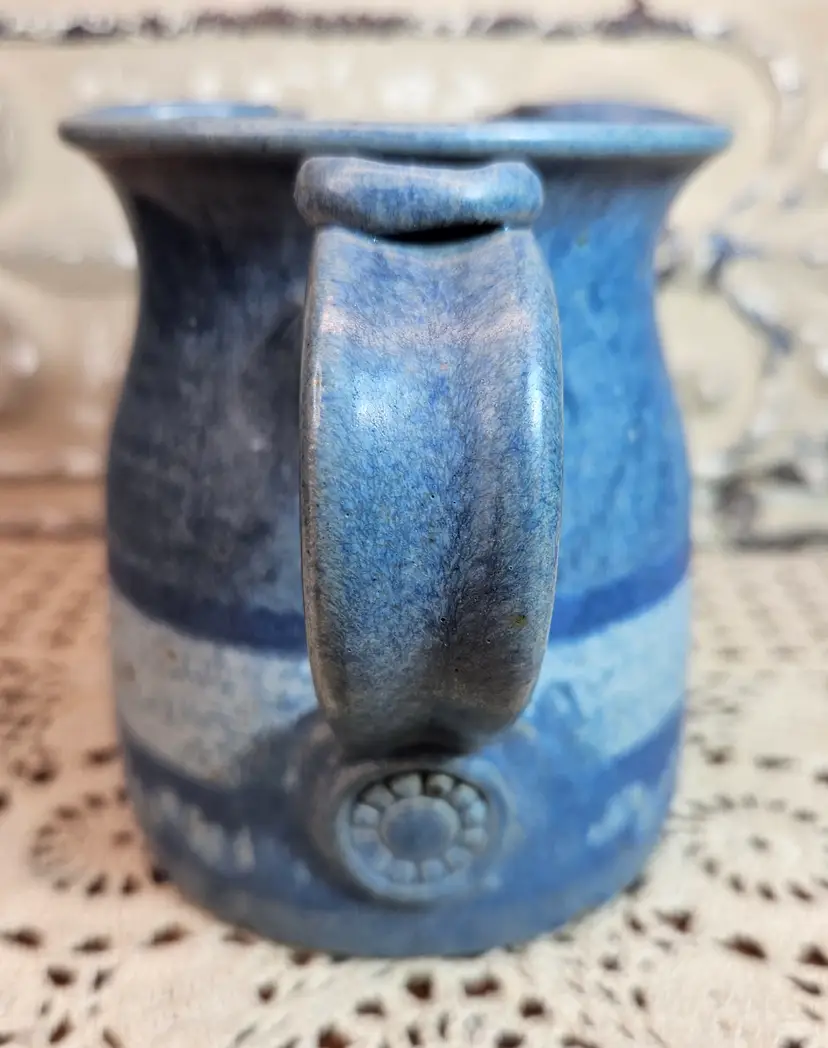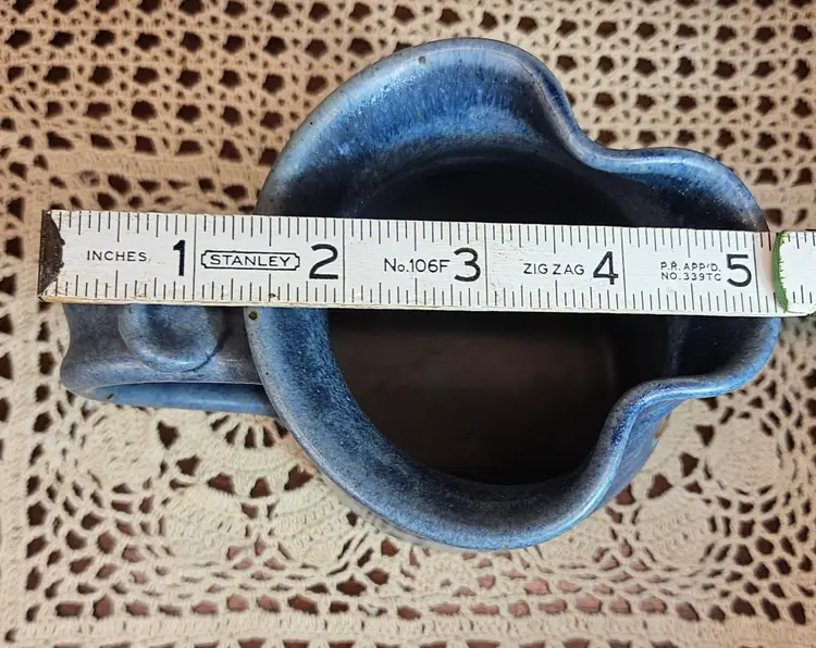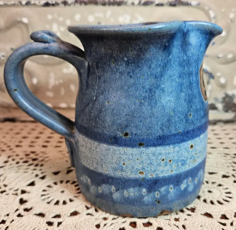 This beautiful piece of Zappa pottery is in excellent, used condition, with no appreciable chips, scratches or cracks. Please note that the bare areas on the bottom rim of the pitcher are not chips (see last 2 photos). These are areas where the glaze did not completely dip to the very bottom of the vessel. Measurements are depicted in the pictures of the item or listed in the description of the item. Please review the photos, as they are part of the item description. Photos will always reveal noticeable defects, as will my description. Any white “blemishes” that are not pointed out in this section are from the lighting that I use for my photos. If you need clarification, please reach out to me.