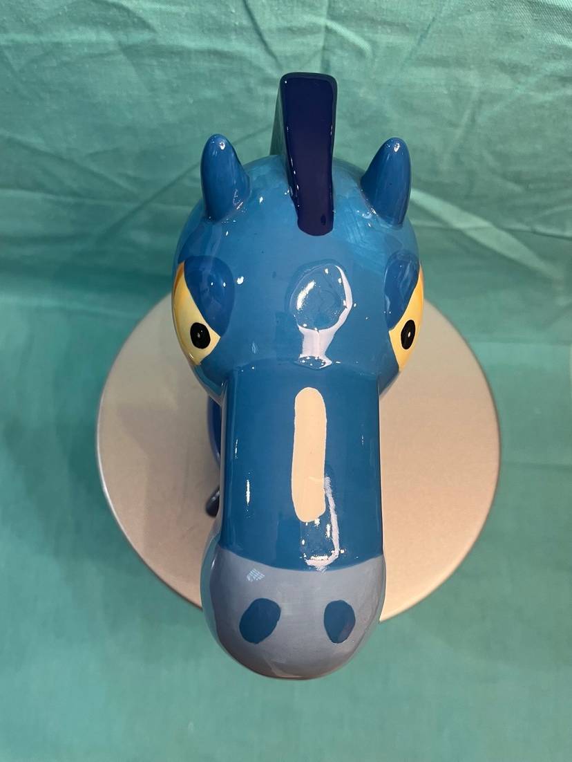 #832 “Silly Saver Hungry Horse” Piggy Bank. Measures 6.5” x 7”. NO RUBBER STOPPER on bottom.