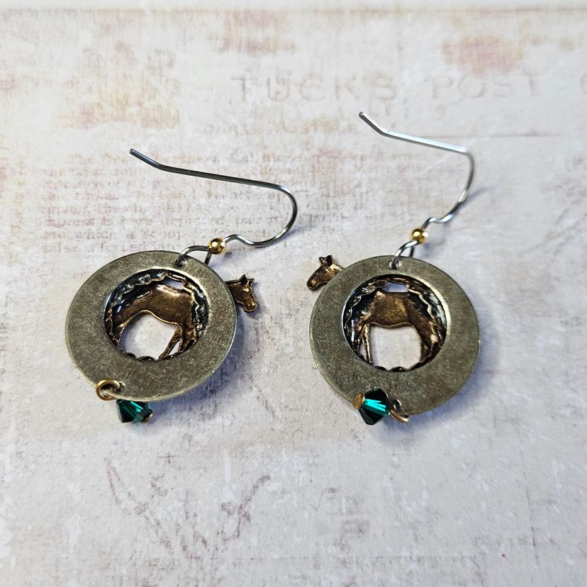 Silver Forest Vermont USA made earrings. Warm tones mixed metals of silver and gold tones.