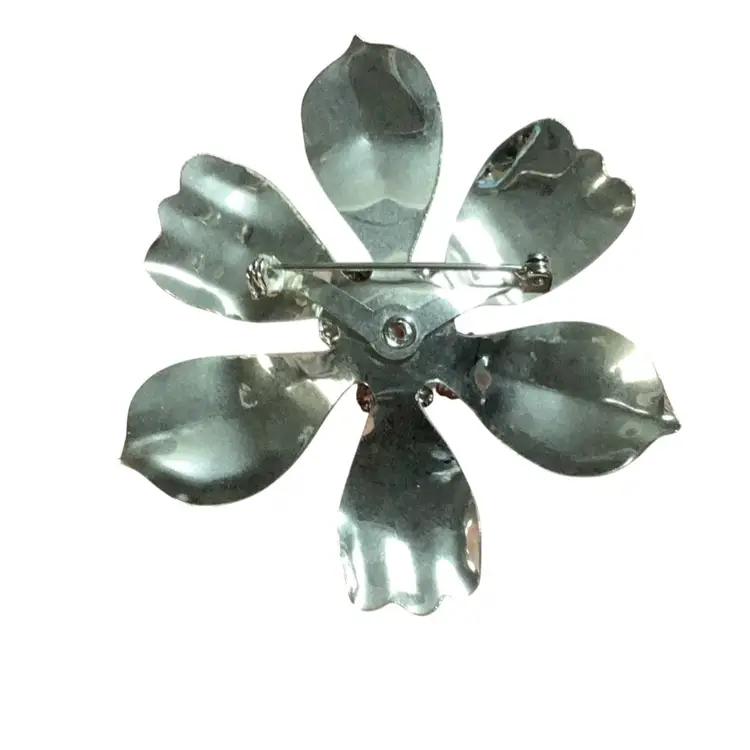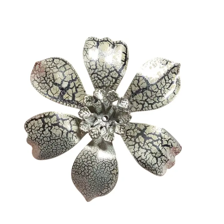 Silver Tone With Fold Tone Crackle Look Metal Flower Brooch 2.5” Diameter