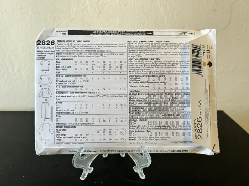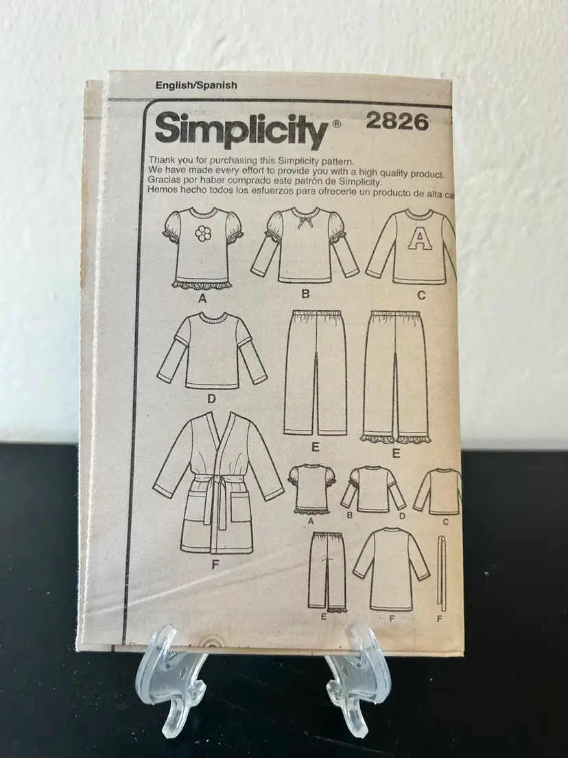 Simplicity Pattern 2826 Kids Pajamas Sz 1/2-1-2-3 Uncut FF 2008 Please see photos. Let me know if you have any questions. Thank you for stopping by.