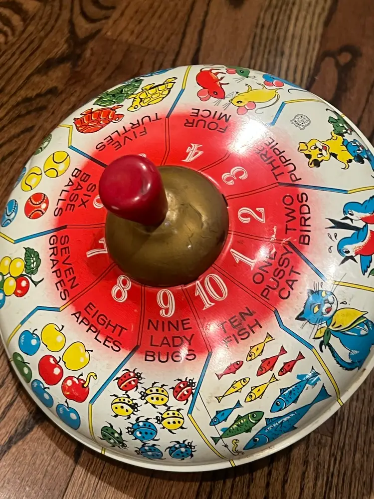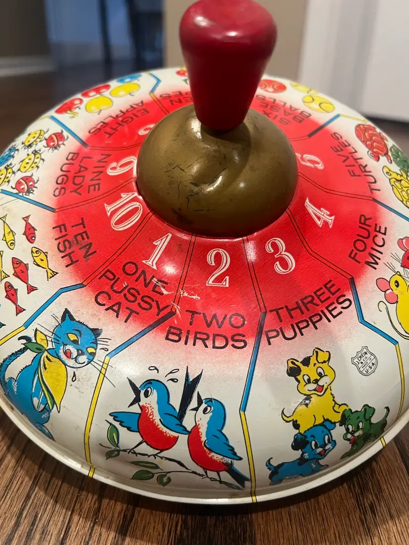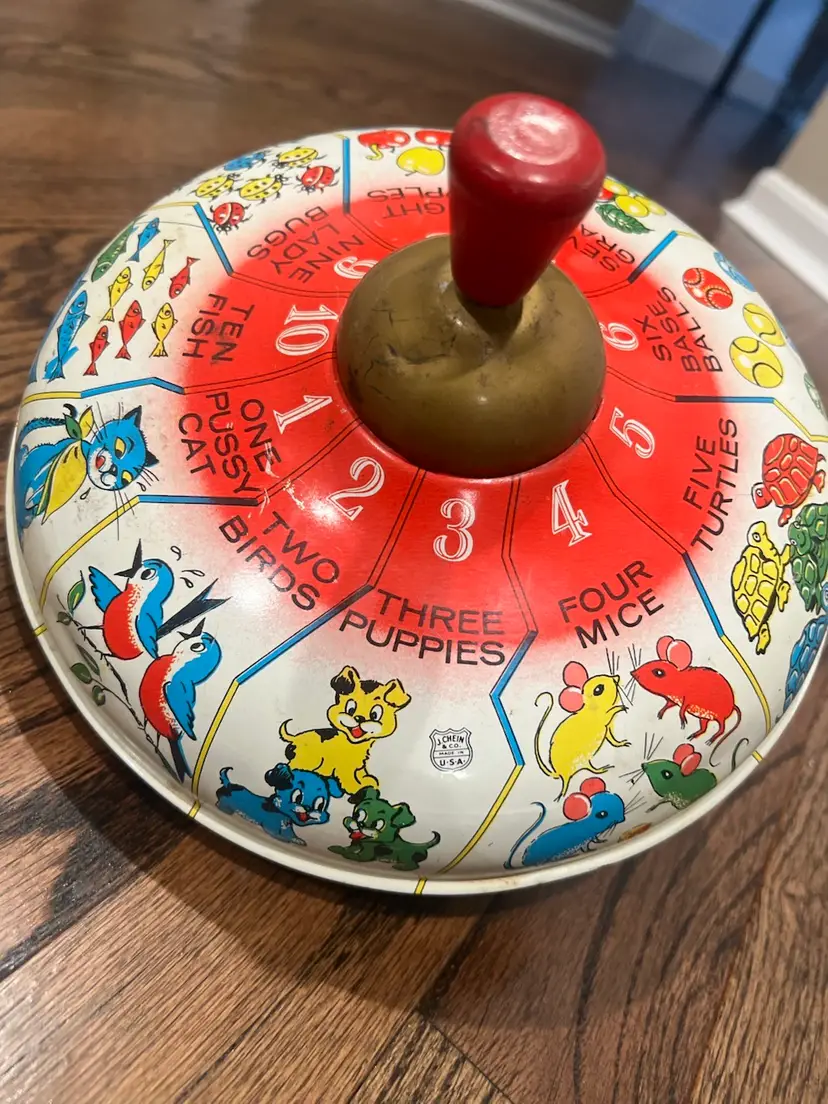 Wonderful vintage condition features a variety of animals. The colors are still pretty vibrant for its age and the top works wonderfully. Please see the video measures approximately 8 inches in diameter. There is some slight surface scratching that is to be expected with age and use. Please know that I always combine shipping and we’ll reimburse your overage. Thank you.