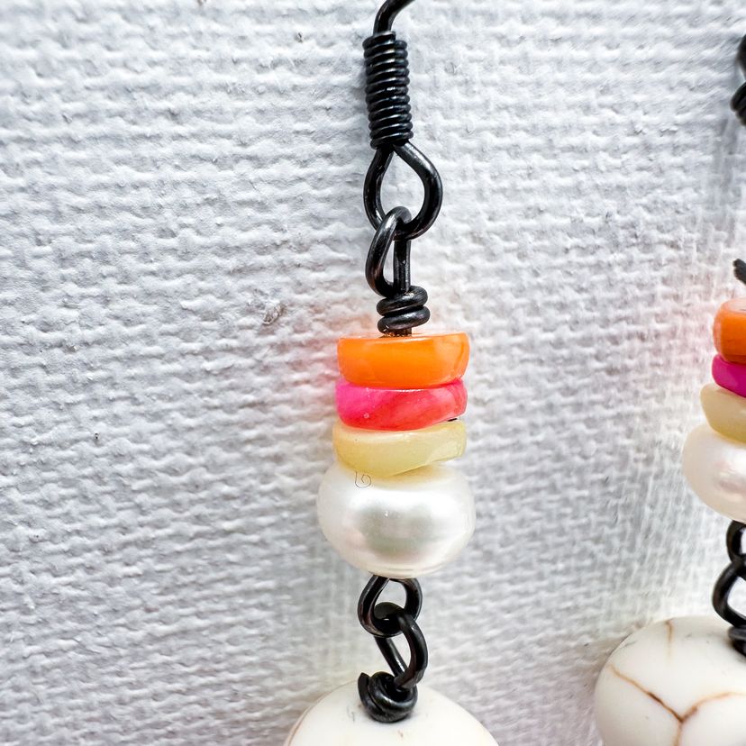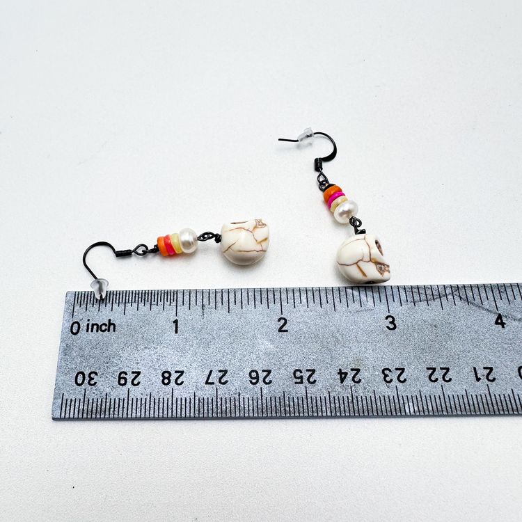 New handmade condition, see all photos Feature a white stone skull bead with pink, orange, yellow shell bead accents and white freshwater pearl Gunmetal tone findings